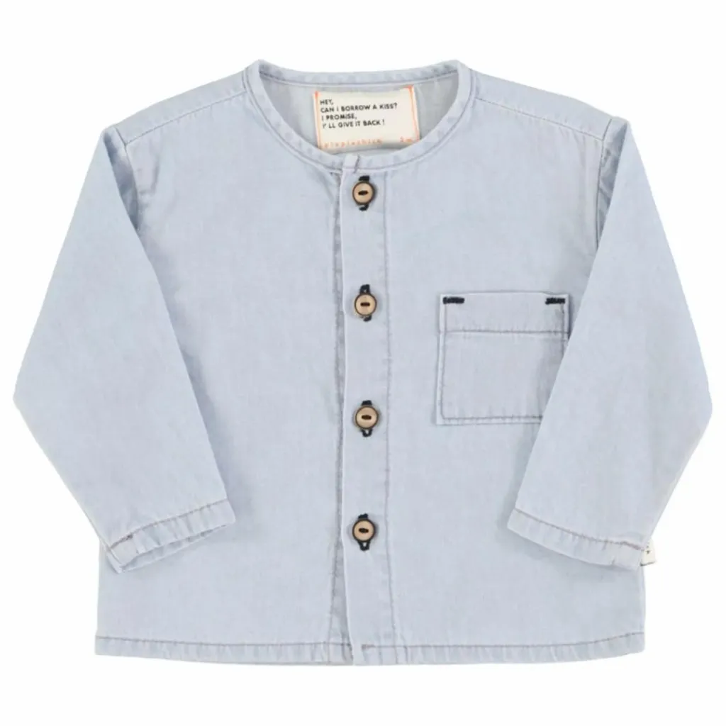 - Chemisier à col Peter Pan avec boutons sur le devant. Poignets élastiqués. Empiècement volant.