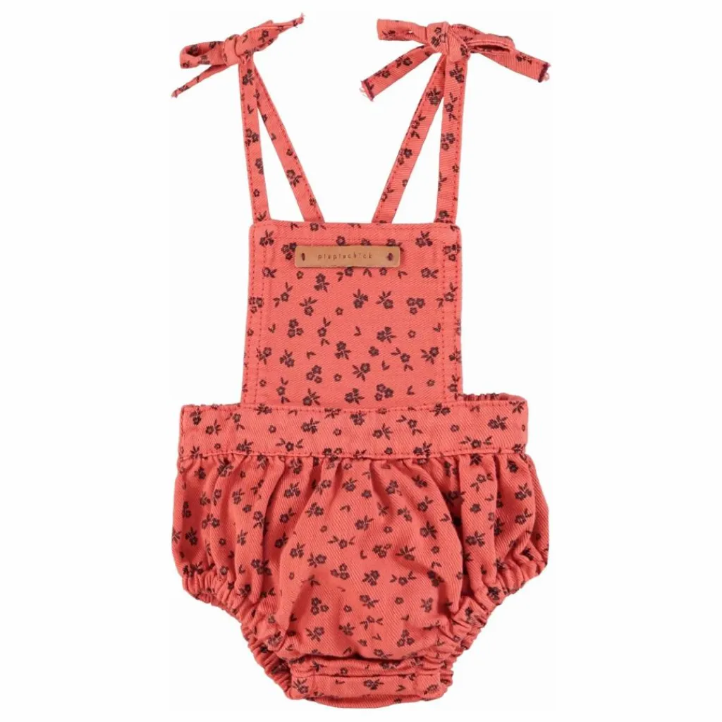 - Combinaison en sergé de coton avec fines bretelles à nouer. Elastique aux cuisses et à la taille. Étiquette logo en cuir sur la poitrine.