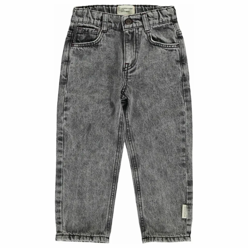 - Pantalon unisexe en denim avec taille réglable. Broderie du logo bordeaux sur une poche arrière.