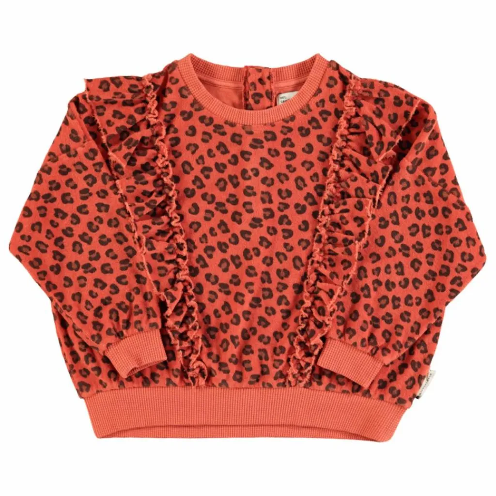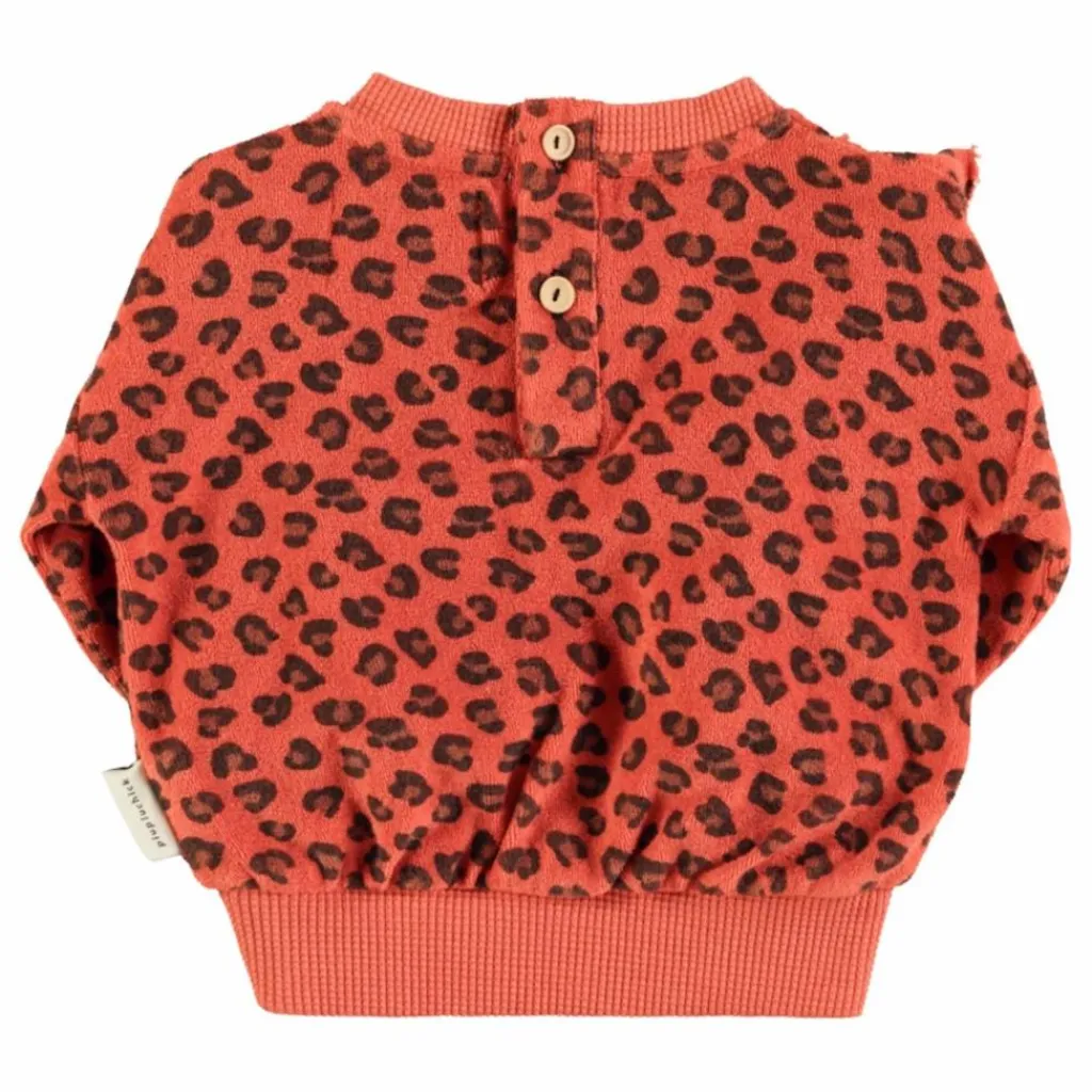 - Sweat en coton éponge. Froufrous sur la poitrine. Poignets gaufrés. Boutons en bois au dos.
