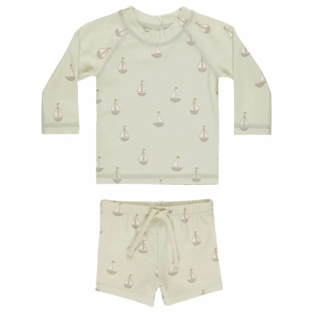 - Cet ensemble de deux pièces protégera votre enfant du soleil avec style. Il se compose d’un haut à manches longues et d’un short pour garçon coordonné, avec un facteur de protection solaire de 50+ et notre imprimé « voiliers » dans une teinte ciel. Mettez le cap sur les aventures estivales dans ce style cool. Entretien : Laver à la machine à froid sur linge délicat. Séchage suspendu. 80 % de polyester recyclé / 20 % d’élasthanne.