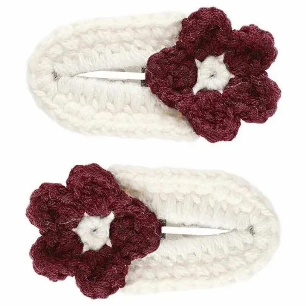 - De jolies barrettes à fleurs au crochet pour vos petites filles, dans notre teinte « burgundy ».