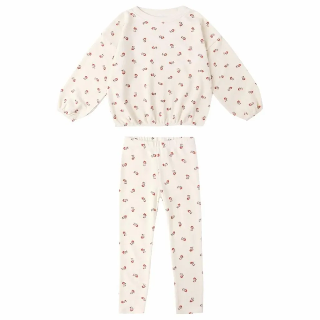 - Notre ensemble en tricot spongieux comprend un pull-over à manches ballon et ourlet élastiqué, associé à un legging ajusté à taille élastique, avec notre imprimé « ruby ditsy » sur notre teinte « naturelle ».