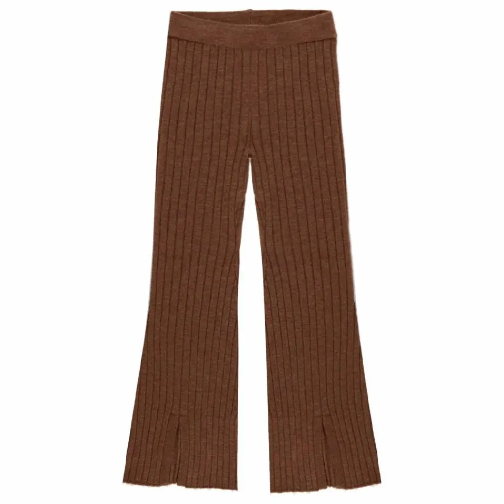 - Amusant et rétro, ce pantalon en maille évasée est doté d’une taille élastique et de fentes latérales pour plus de mouvement et de style.