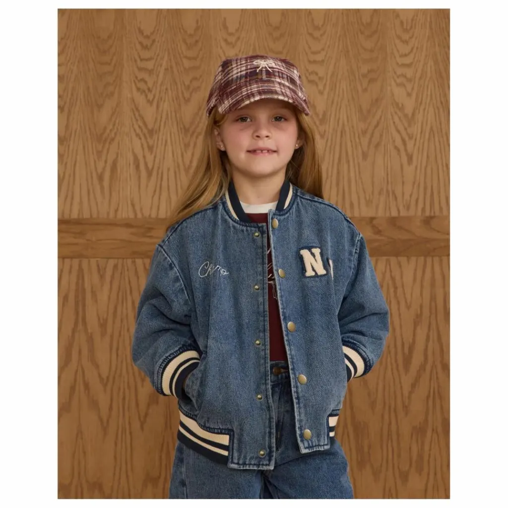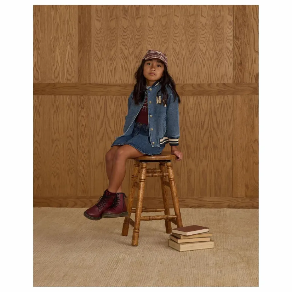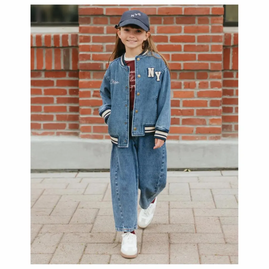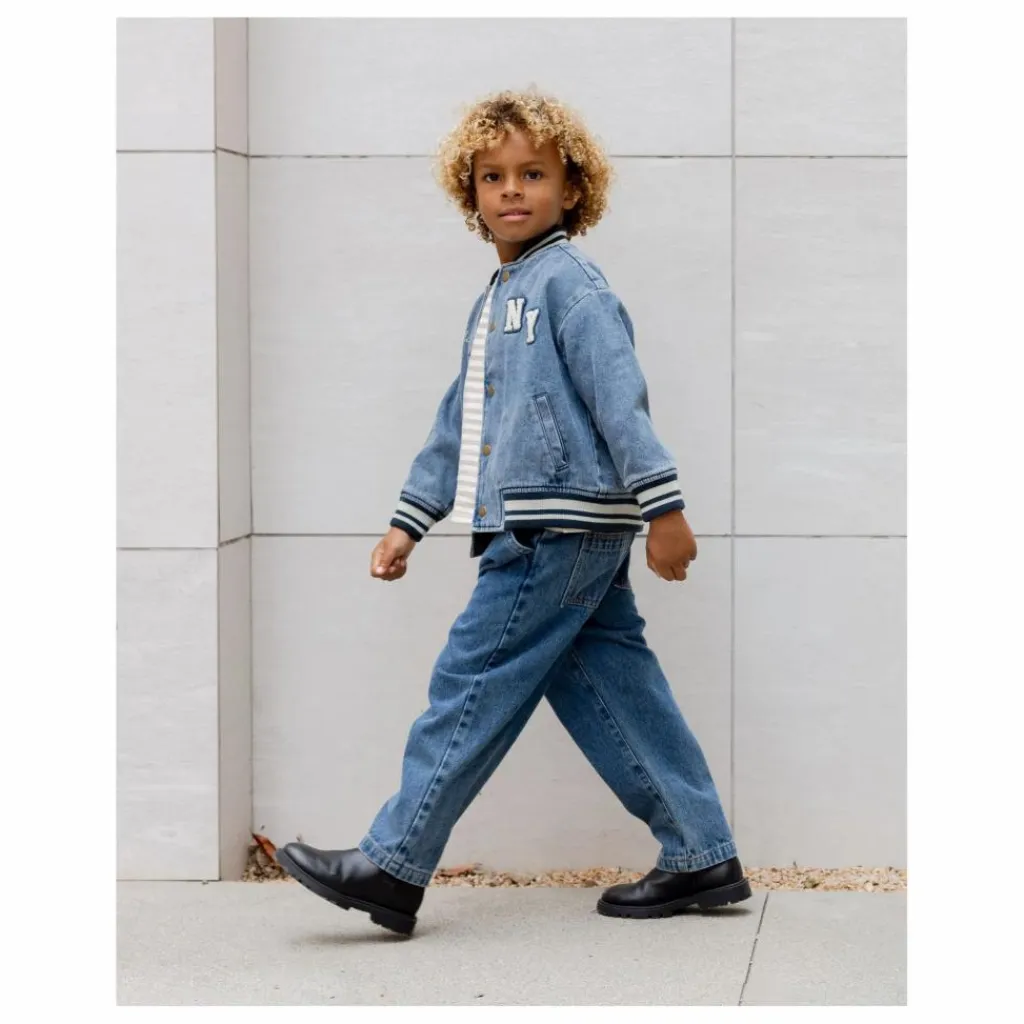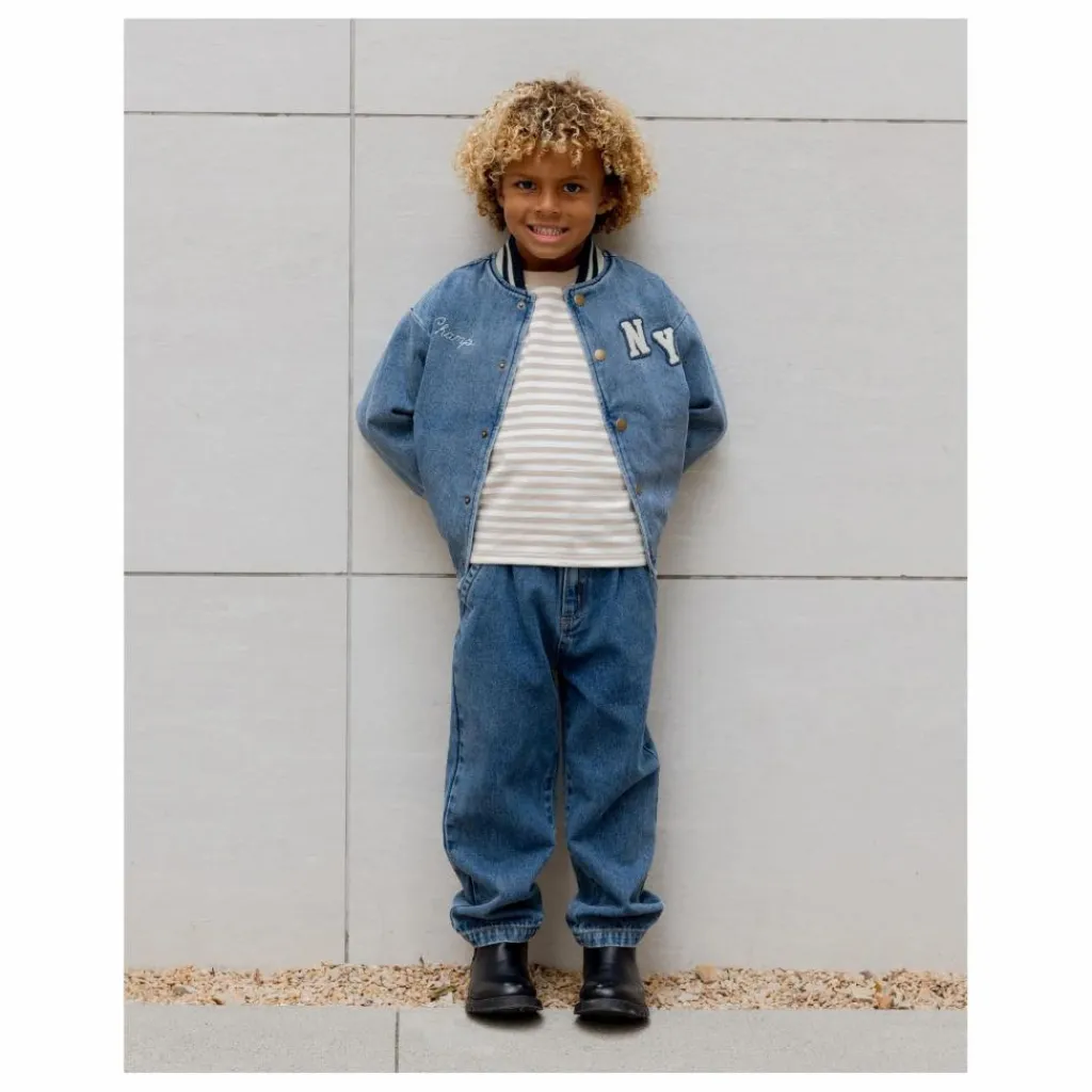 - Notre veste Varsity Jacket apporte toutes les vibrations de la préparation vintage, avec des côtes rayées au niveau du col, des poignets et de l’ourlet, des boutons-pression en métal enduit, des poches latérales et une doublure en coton doux. Un classique qui ne manquera pas de faire mouche, avec notre broderie « champ » et notre écusson « NY » sur notre denim « indigo ».
