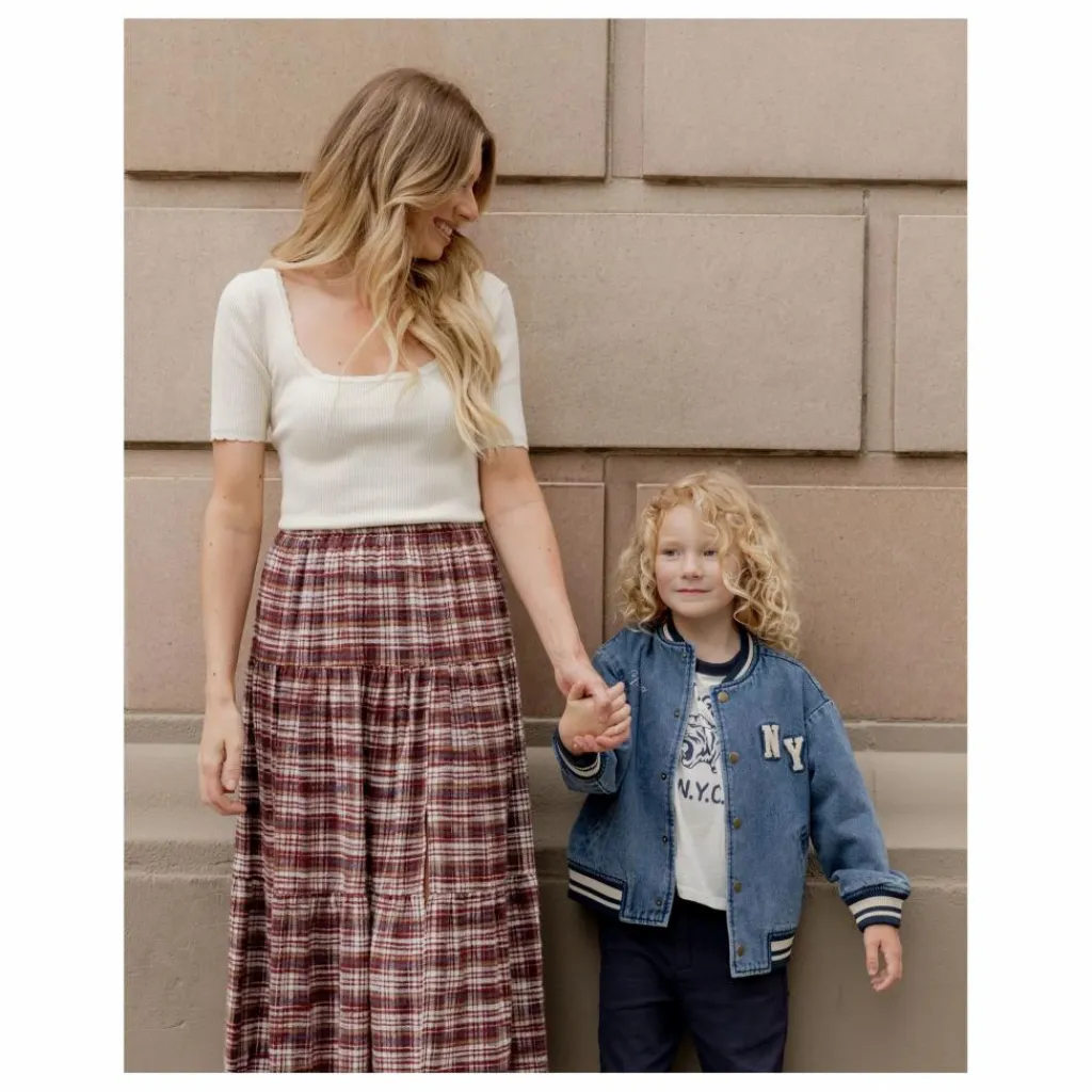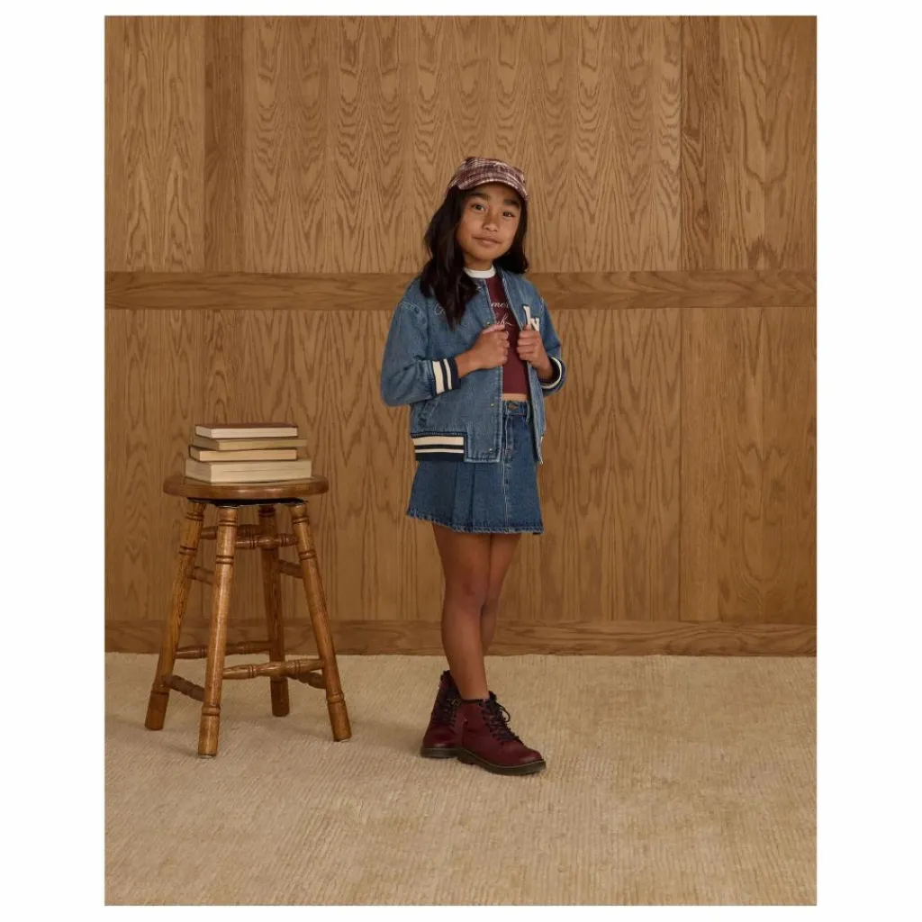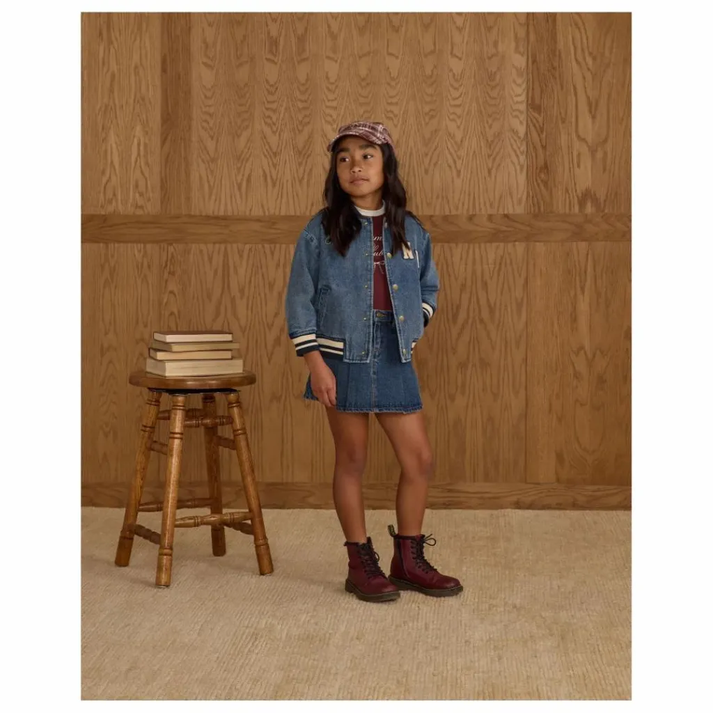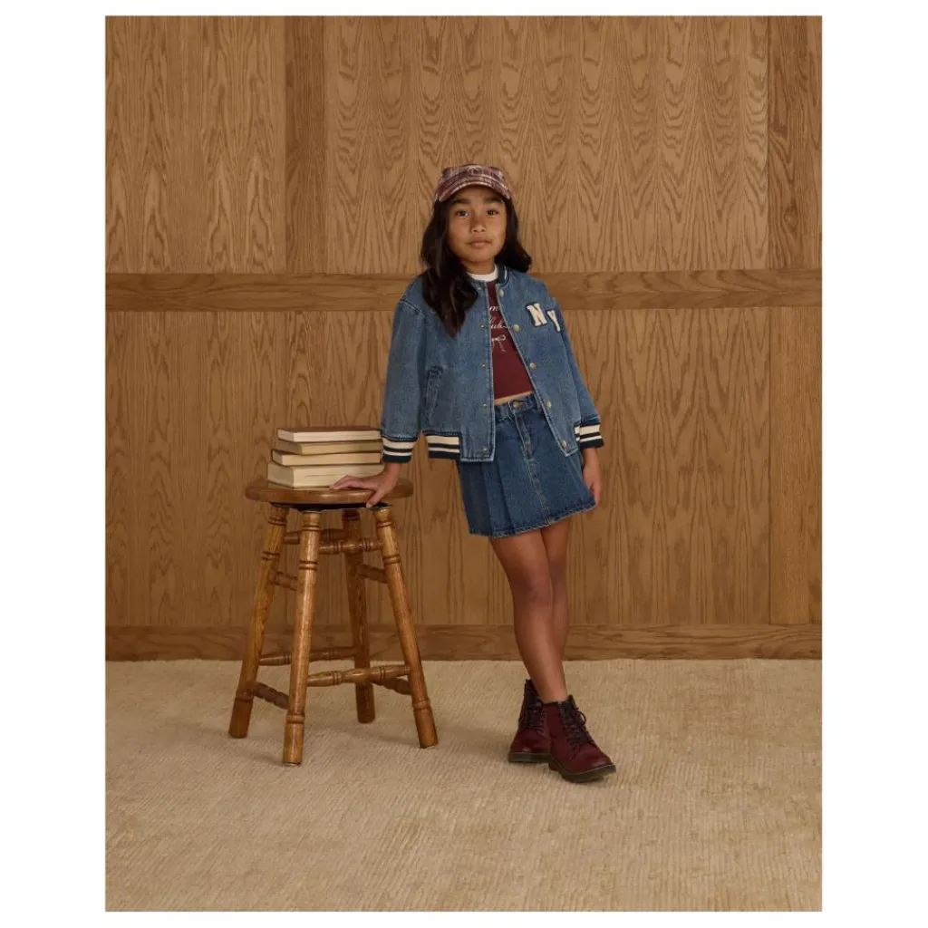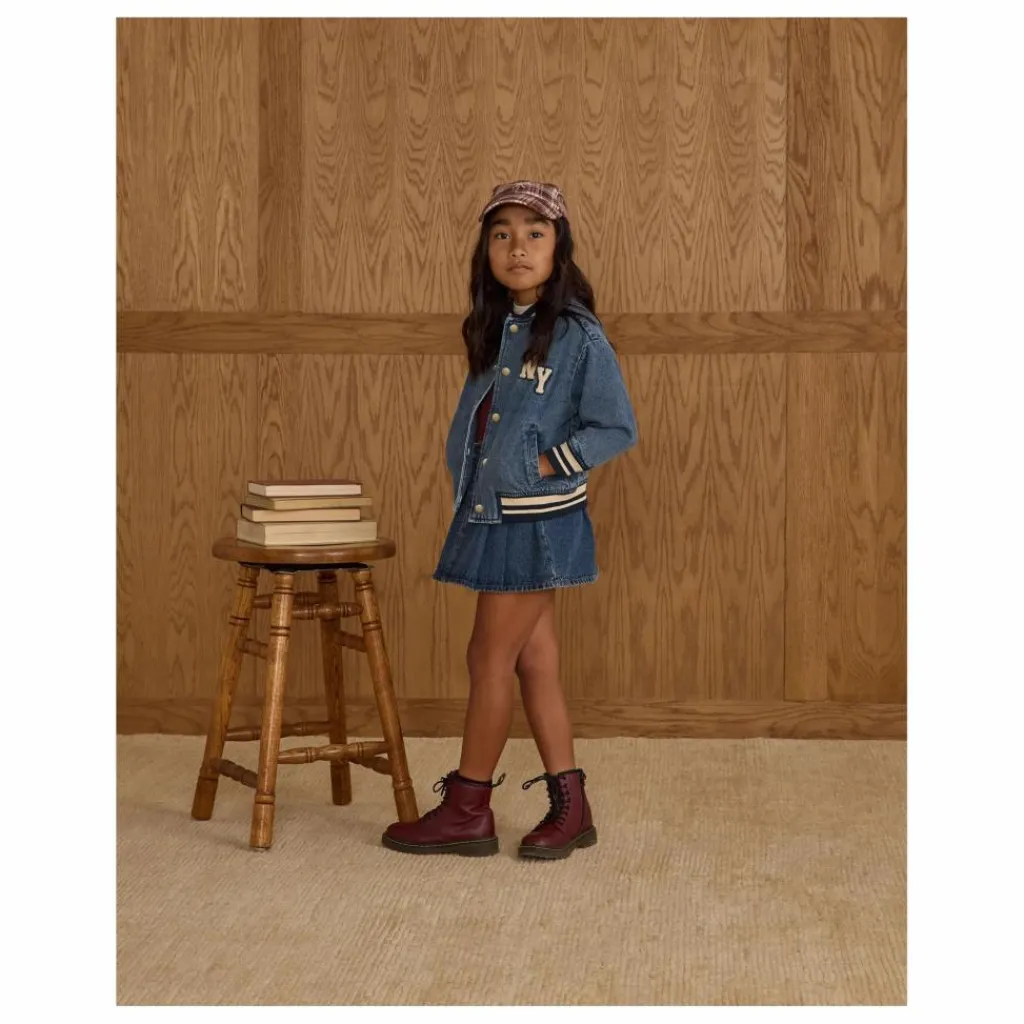 - Notre veste Varsity Jacket apporte toutes les vibrations de la préparation vintage, avec des côtes rayées au niveau du col, des poignets et de l’ourlet, des boutons-pression en métal enduit, des poches latérales et une doublure en coton doux. Un classique qui ne manquera pas de faire mouche, avec notre broderie « champ » et notre écusson « NY » sur notre denim « indigo ».