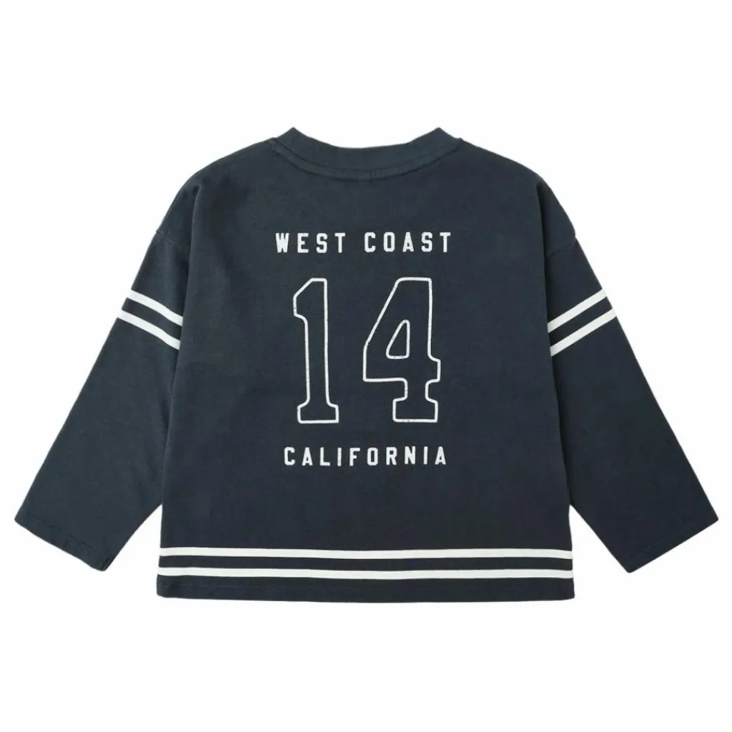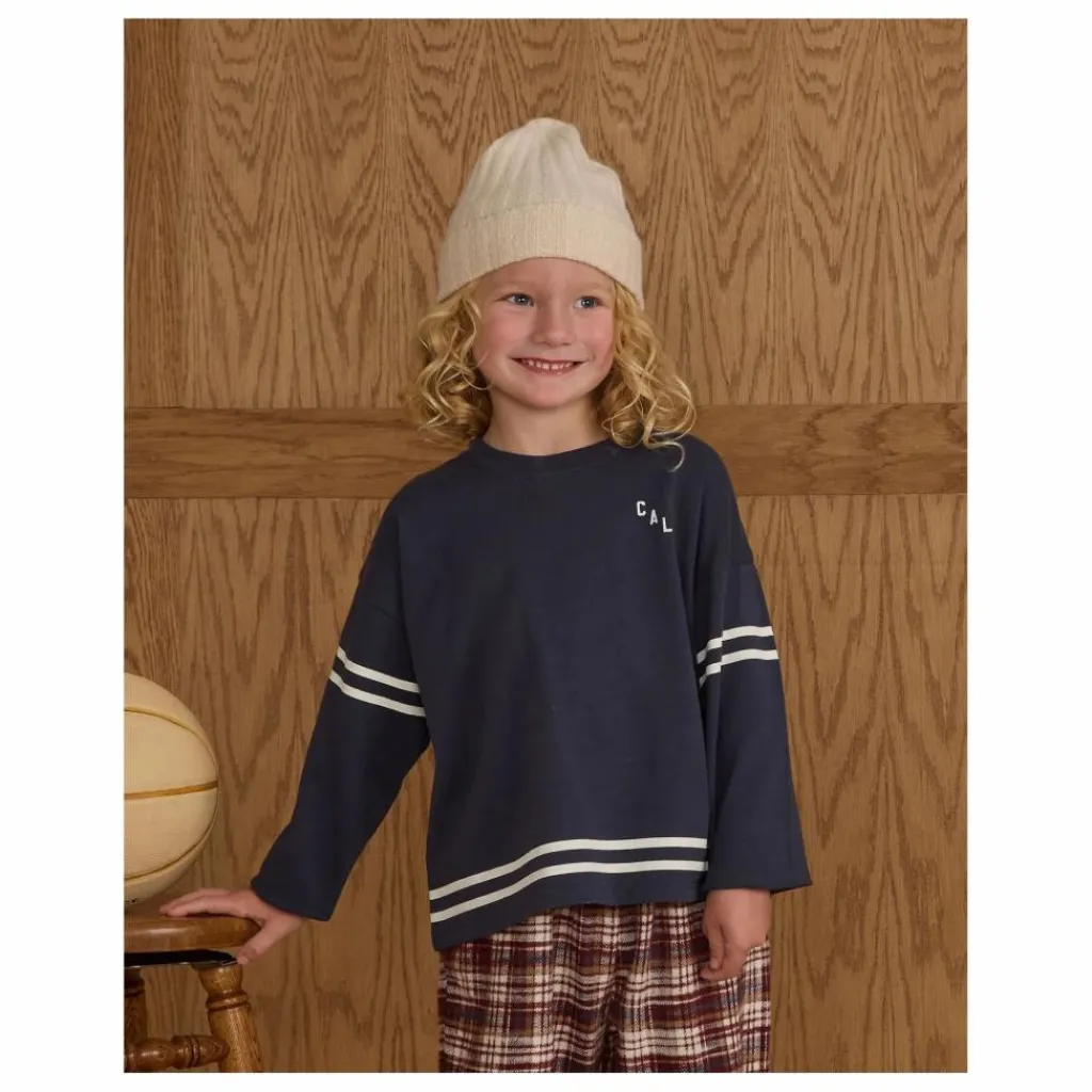 - Notre tee-shirt à manches longues Camden, de forme carrée, est un basique de la saison, avec des côtes contrastées au niveau de l’encolure pour un look cool et classique. Des boutons-pression aux épaules sont inclus dans les tailles 0-3M – 18-24M pour faciliter les changements. Avec nos imprimés à pois « cali » sur notre teinte « navy ».