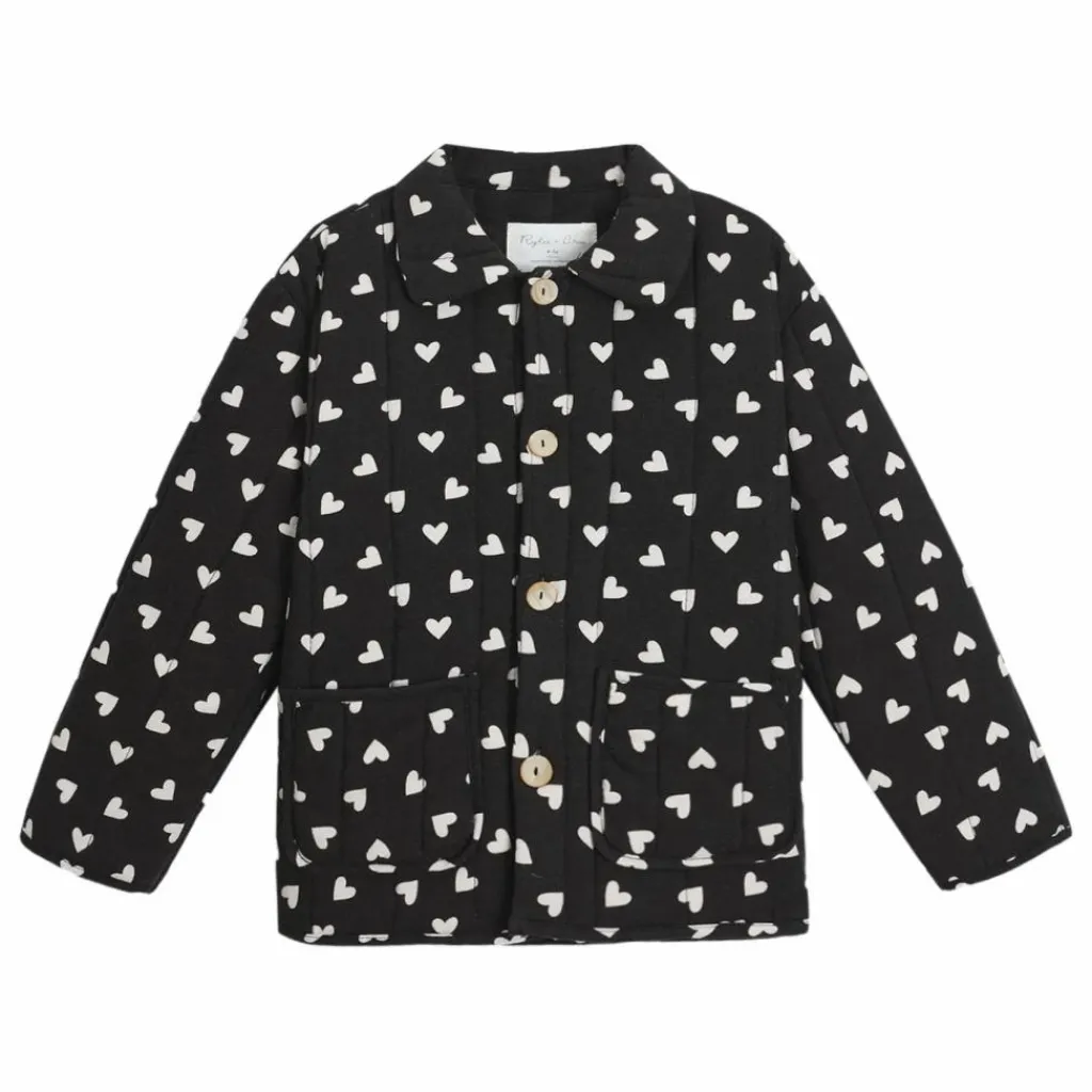 - Mignon manteau matelassé pour les journées fraîches avec un col charmant et des poches plaquées sur le devant, avec notre imprimé « cœurs » sur notre teinte « noire ».