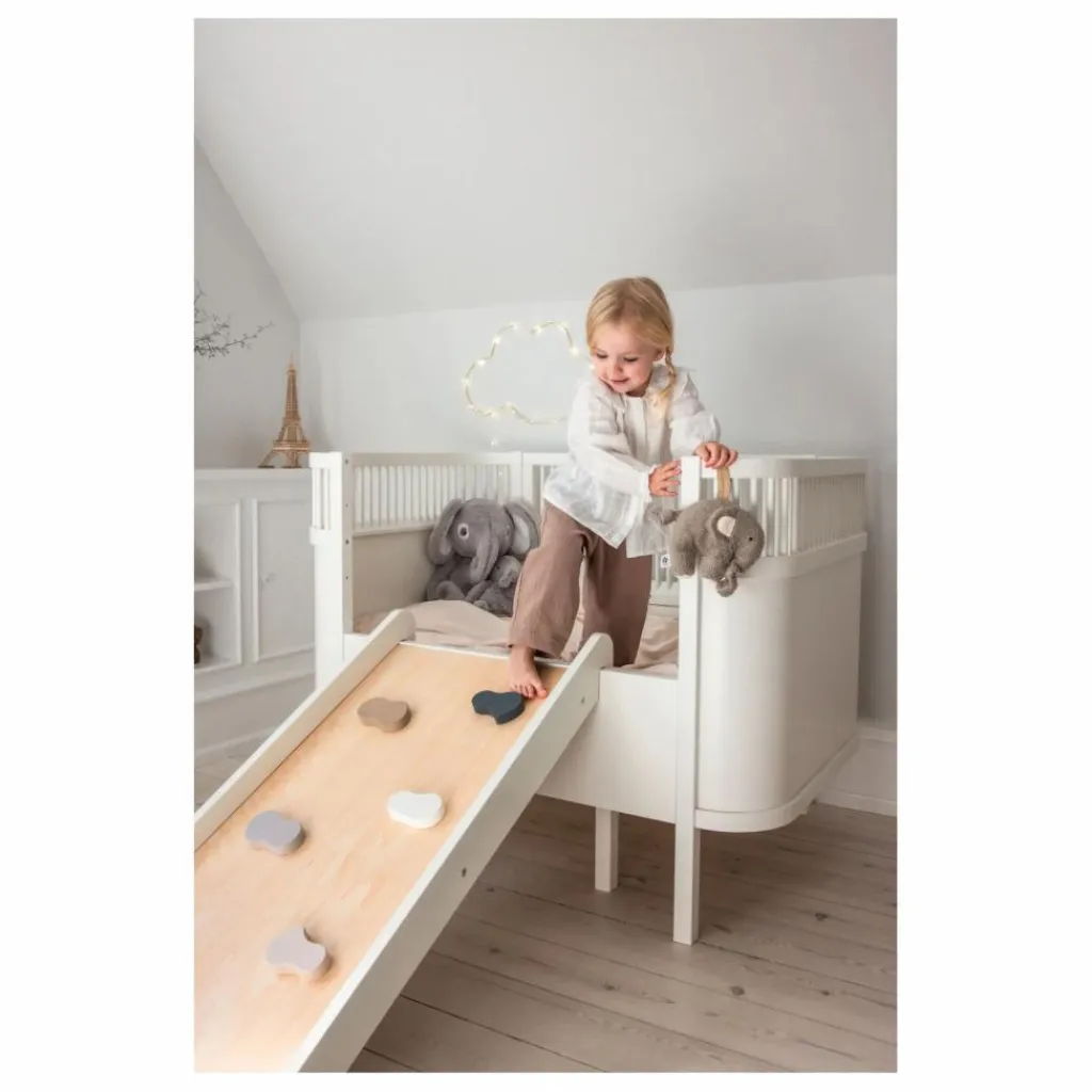 - Créez des défis pour votre enfant en fixant la planche à grimper et à glisser au lit Sebra ou au triangle à grimper Sebra. Il est parfait pour rendre l’entrée et la sortie du lit plus excitantes et peut rapidement faire partie d’un parcours d’activités. La planche peut être utilisée comme mur d’escalade ou comme toboggan – c’est vous qui décidez ! Il suffit de démonter les côtés et de retourner la planche pour changer de fonction et rendre le jeu plus flexible et plus amusant. La planche d’escalade et de toboggan 2 en 1 se monte facilement : La planche à grimper et à glisser est conçue au Danemark et est facile à assembler en suivant les instructions fournies.
