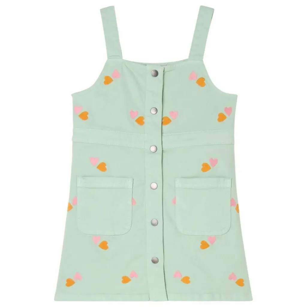 - Robe courte en gabardine Cœurs brodés sur tout le corps Ouverture sur le devant