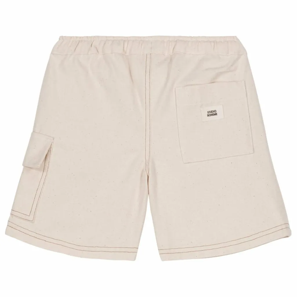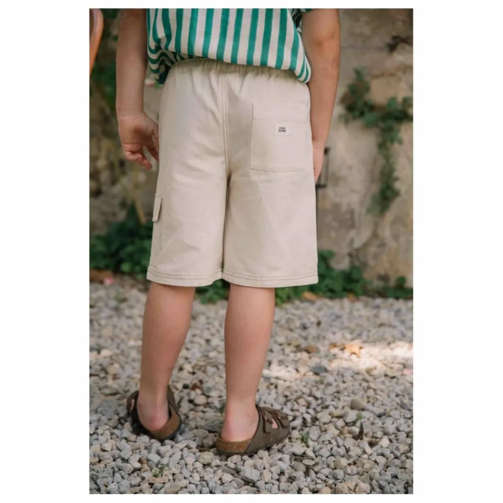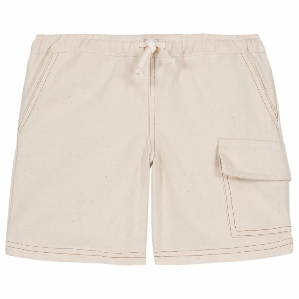 - Bermuda confortable en coton sergé avec coutures contrastées. Taille élastiquée avec cordon de serrage. 2 poches latérales, 1 poche arrière et 1 grande poche à rabat sur le côté.