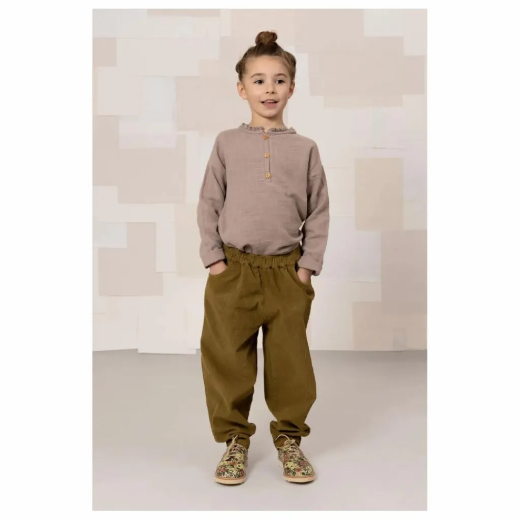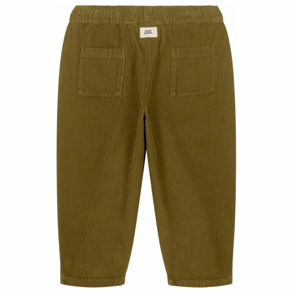 - Pantalon mixte en velours côtelé. Forme carotte confortable et pratique.