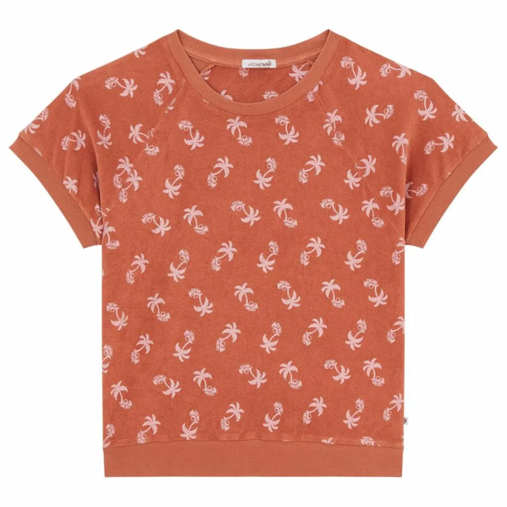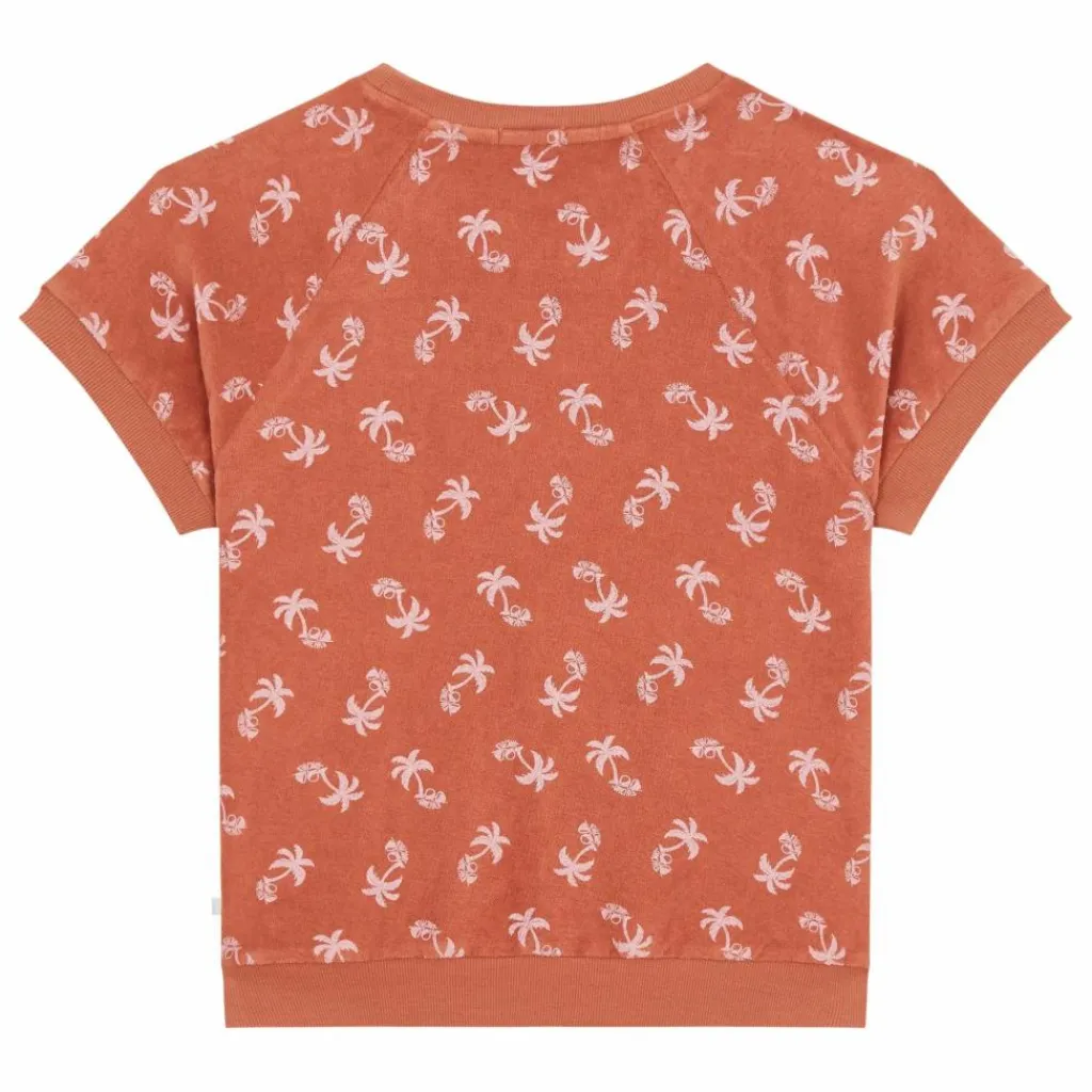 - Motif Palmiers blancs imprimés façon vintage, pour une touche tropicale et rétro. Oversize pour une allure streetwear et effortless. Col rond côtelé. Manches courtes loose. Bords finis avec une bande côtelée. Matière éponge ultra douce fine, respirante et légère.