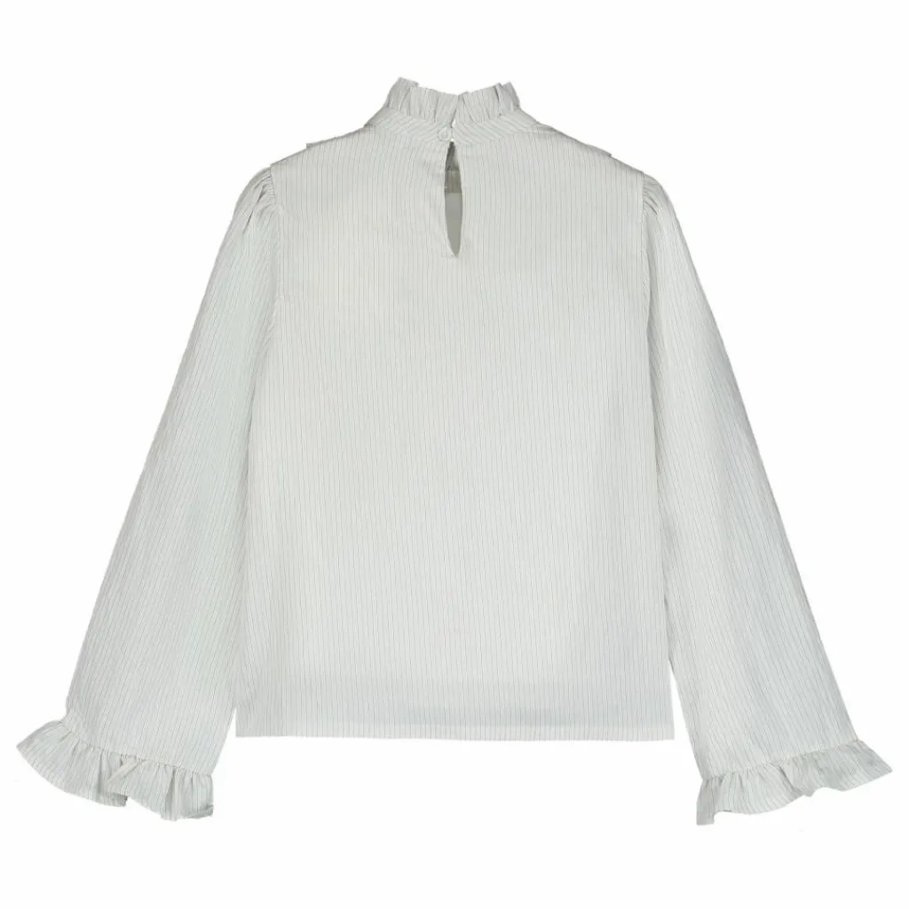 - – Coupe décontractée – Encolure volantée – Manches volumineuses – Poignets volantés – Boutonné au dos – Doublé