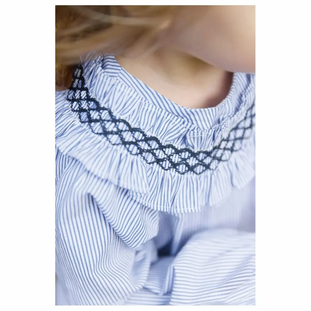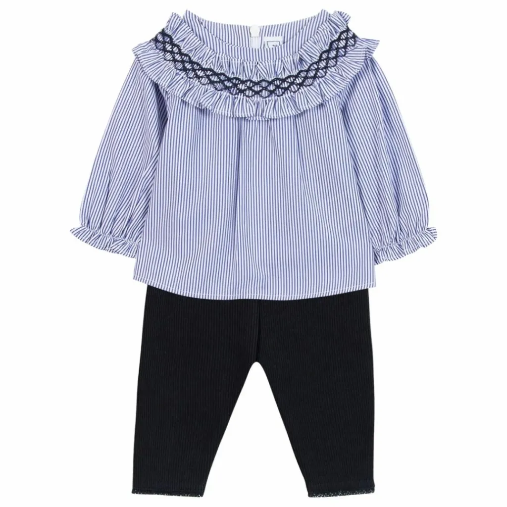 - Ensemble pour bébé fille, composé d’un haut en chambray doux, orné d’un smock délicat au col et de manches resserrées pour une finition élégante. Le pantalon, en coloris marine profond, complète parfaitement ce duo raffiné, alliant confort et charme intemporel pour les petites princesses au quotidien.