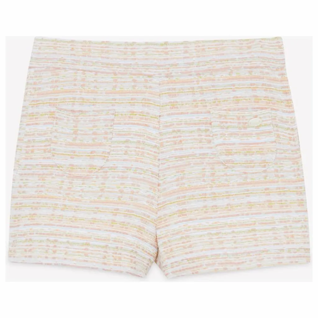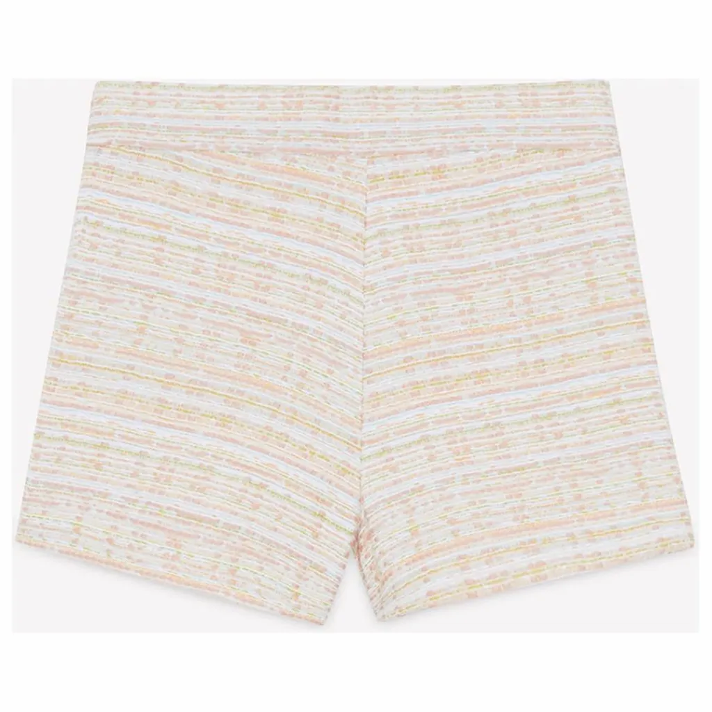 - Ce short en tweed couleur écru pour junior fille, doté de poches sur le devant et confectionné dans un tissu français, allie élégance et raffinement. Parfait pour les occasions spéciales ou les journées estivales, il s’associe idéalement avec un haut léger pour un ensemble chic. CA26052-13