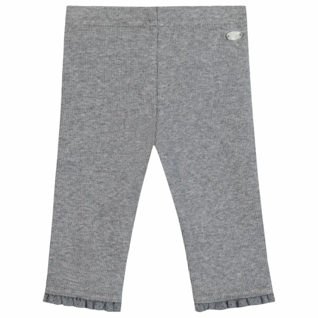 - Ce legging pour bébé fille, en couleur gris, est confectionné en coton côtelé pour garantir confort et douceur. Il se distingue par de délicates dentelles en bas des jambes, ajoutant une touche de charme à ses tenues. Pratique et élégant, ce legging est idéal pour les journées fraîches tout en apportant une note de raffinement à ses looks.
