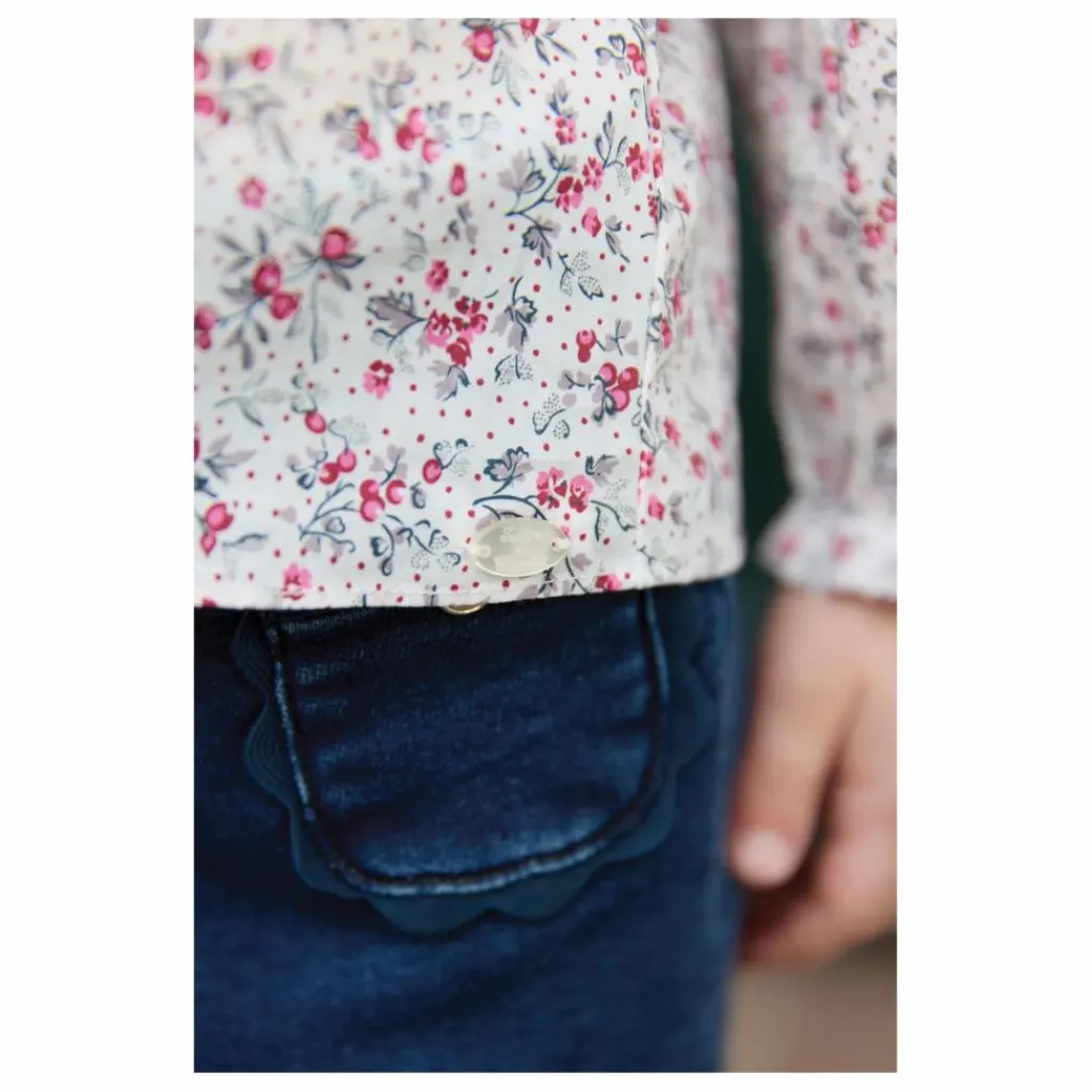 - Ce jean pour bébé fille, en coloris marine, allie confort et style grâce à sa taille élastiquée qui facilite l’habillage. Il est doté de deux poches ornées de détails boutons sur le dessus, apportant une touche délicate et féminine à cette pièce du quotidien. Parfait pour composer un look à la fois pratique et raffiné.