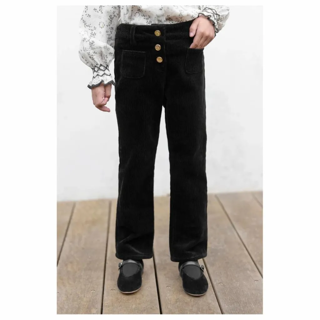 - Ce pantalon pour junior fille, en coloris noir, est confectionné en velours doux et confortable. Avec ses deux poches sur le devant, il allie praticité et élégance. Parfait pour un look chic et décontracté, il est idéal pour toutes les occasions.