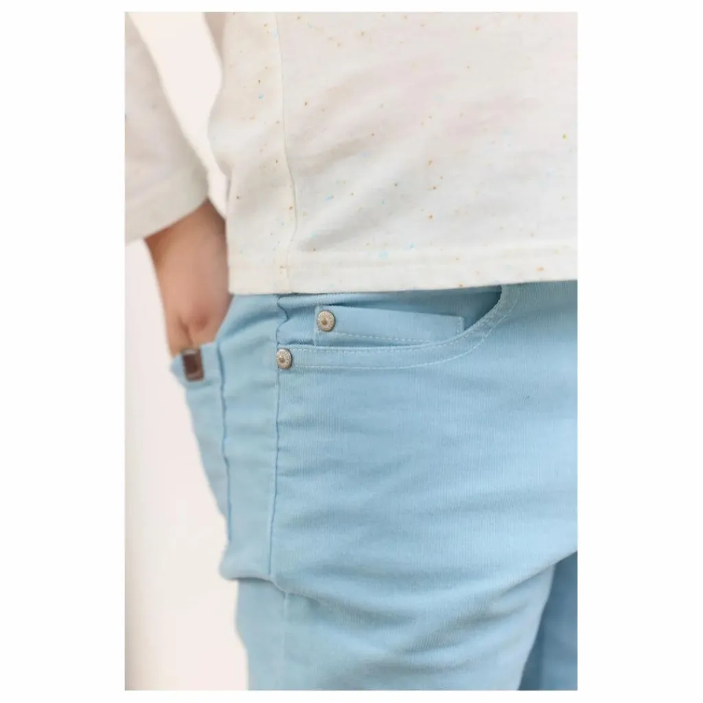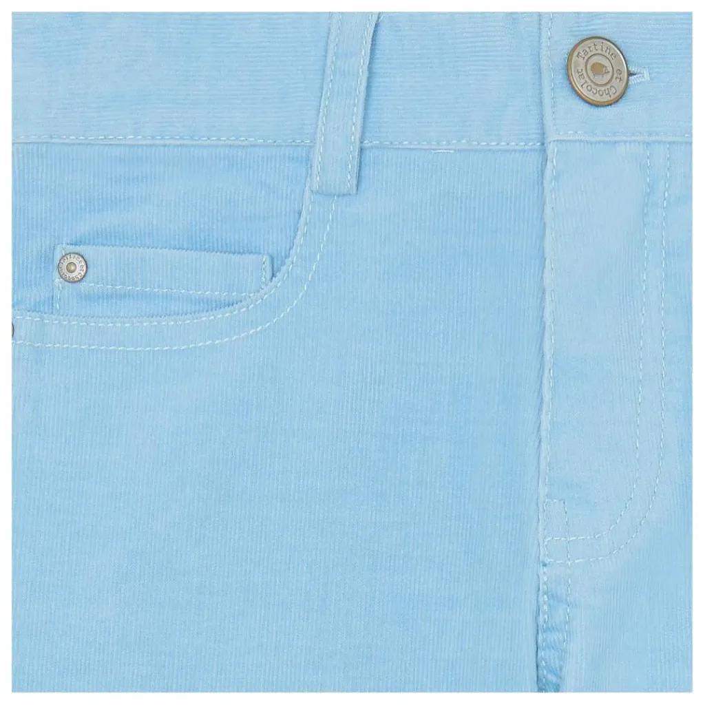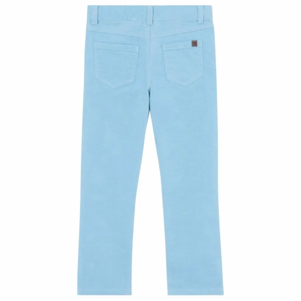 - Ce pantalon pour junior garçon, en coloris bleu glacier, est confectionné en velours doux, offrant confort et élégance. Il est équipé de poches sur les côtés pour une touche pratique et stylée. Idéal pour les journées fraîches, ce pantalon ajoute une note chic à ses looks tout en restant décontracté.