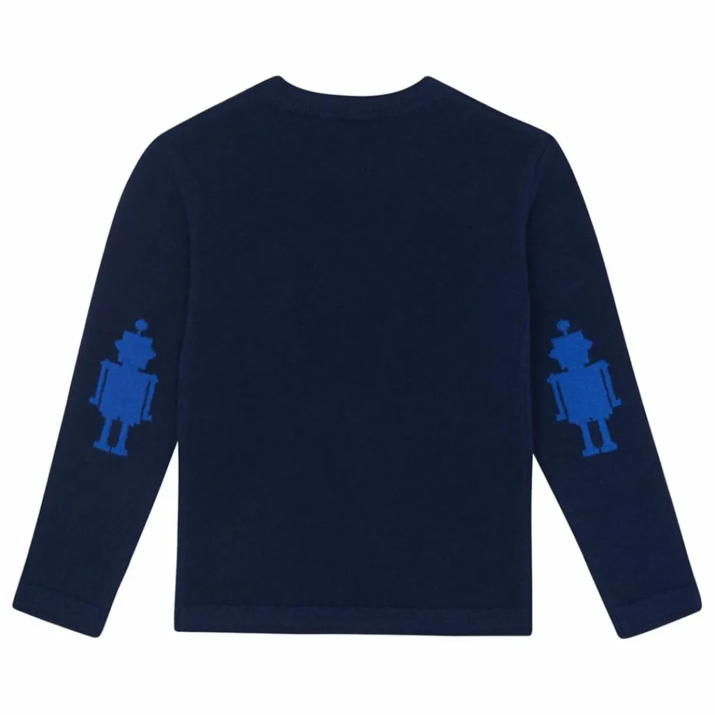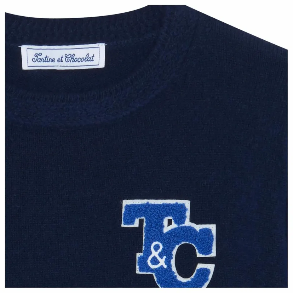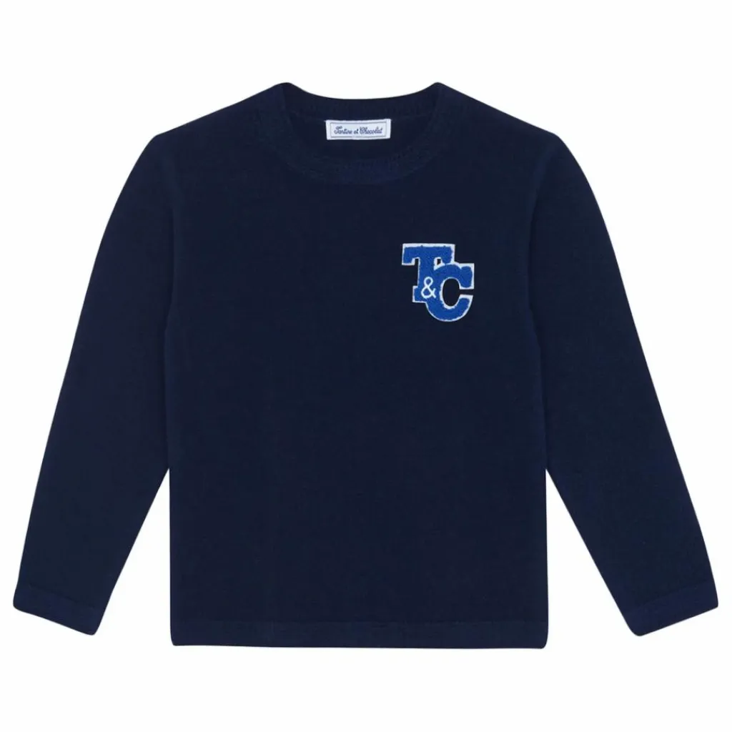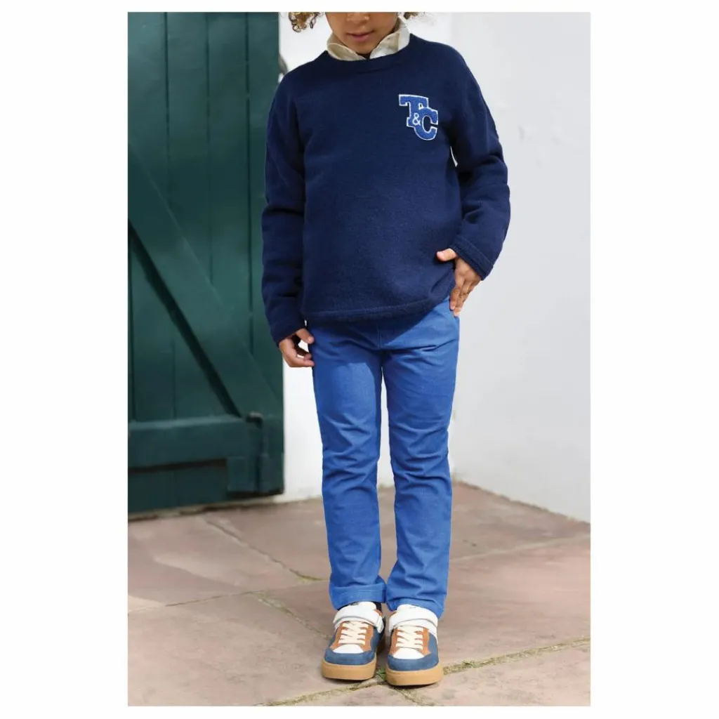 - Ce pull pour junior garçon, en coloris marine, séduit par son style à la fois simple et dynamique. Sa signature TC sur le devant, contrastée en bleu électrique, apporte une touche moderne et graphique. Confectionné dans une maille confortable, avec un col rond classique, il est idéal pour composer un look du quotidien à la fois cool et soigné.