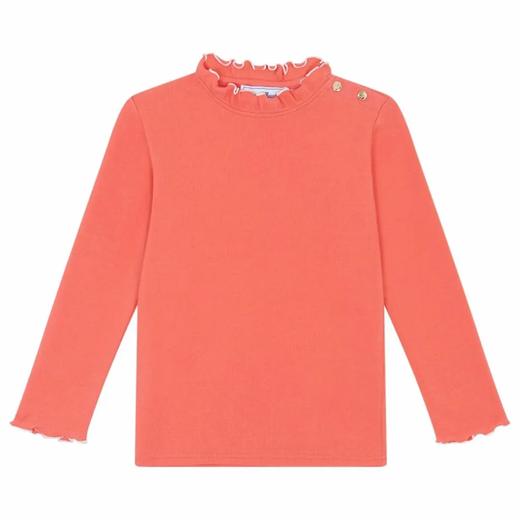 - Ce sous-pull praline à manches longues pour bébé fille séduit par son col cheminé festonné et ses délicates finitions écrues au col et aux poignets, apportant une touche de raffinement aux tenues hivernales. Ses boutons sur le côté du col facilitent l’habillage, alliant praticité et élégance. Confectionné avec soin, il enveloppe bébé de douceur et l’accompagne avec charme tout au long de la saison. À porter seul ou sous un cardigan pour une silhouette délicate et intemporelle.
