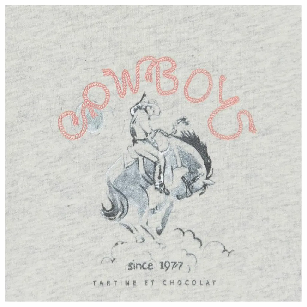 - Ce t-shirt gris chiné, avec son illustration ludique de cowboy, est idéal pour les petits aventuriers en quête d’aventures. Confectionné dans une matière douce et agréable, il offre un confort optimal pour les journées de jeu. Avec son design plein de charme, ce t-shirt se combine facilement avec un short ou un pantalon, apportant une touche d’esprit western au dressing de votre enfant. Une pièce incontournable qui fera le bonheur des petits cowboys en herbe. Fabriqué en Europe. CA10051-20
