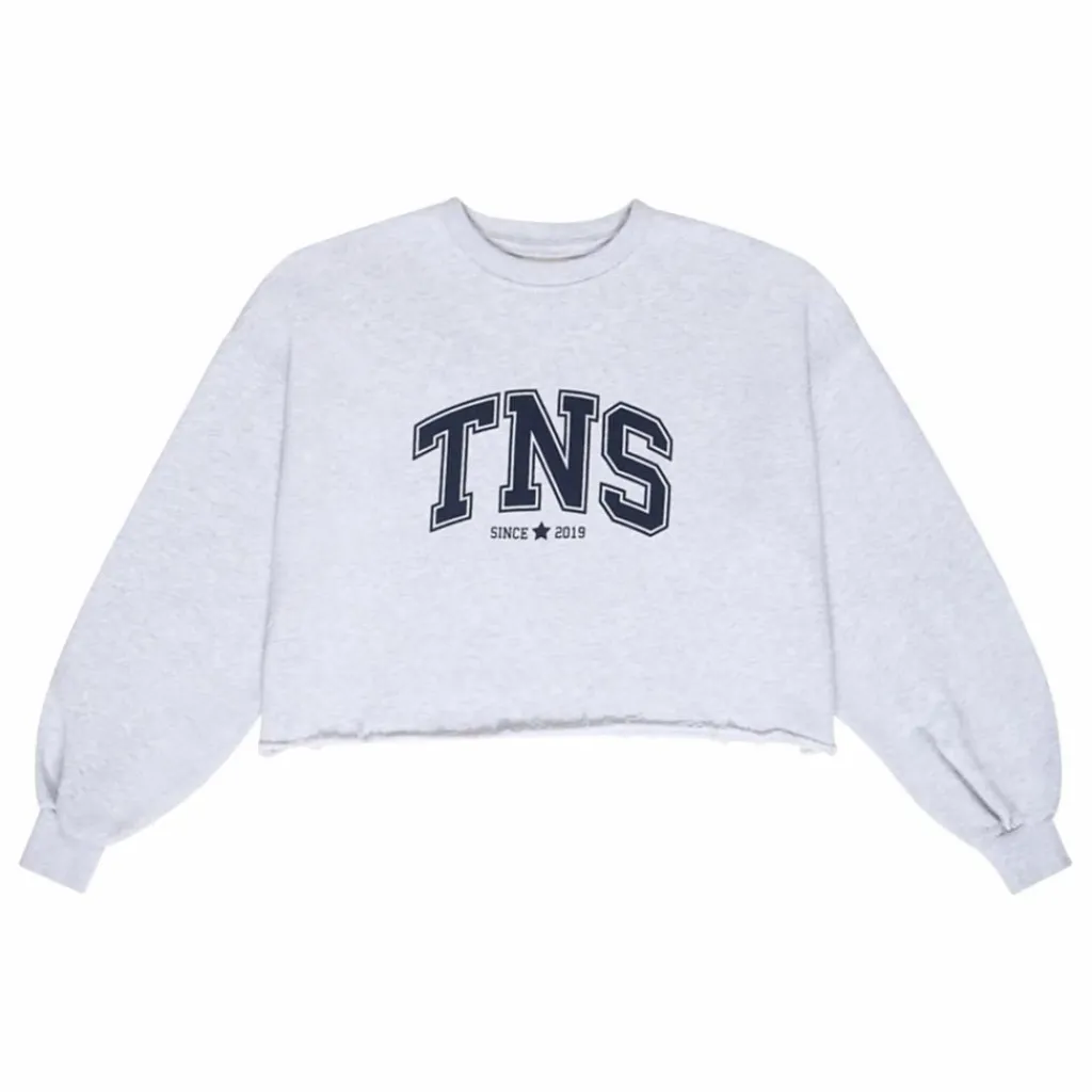 - Sweatshirt court avec poignets et col côtelés et imprimé varsity sur le devant.