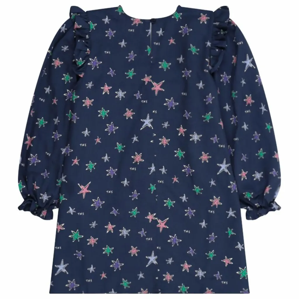 - Blouse en flanelle à l’imprimé étoilé magnifique et coloré. Elle présente des plis sur le devant et des volants sur les épaules. Le dos a une ouverture en forme de goutte d’eau avec une fermeture à boutons. Cit a une jupe assortie pour compléter le look.