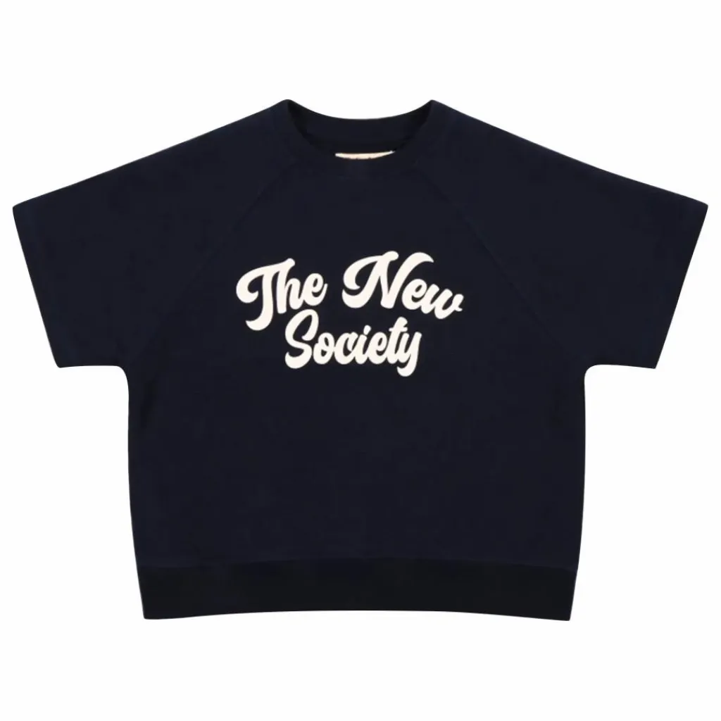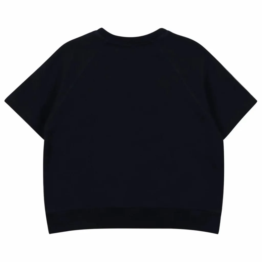 - Sweat à manches courtes avec finition à bords bruts. Il est doté d’un col et d’un ourlet côtelés, et d’un imprimé positionnel contrasté sur le devant.