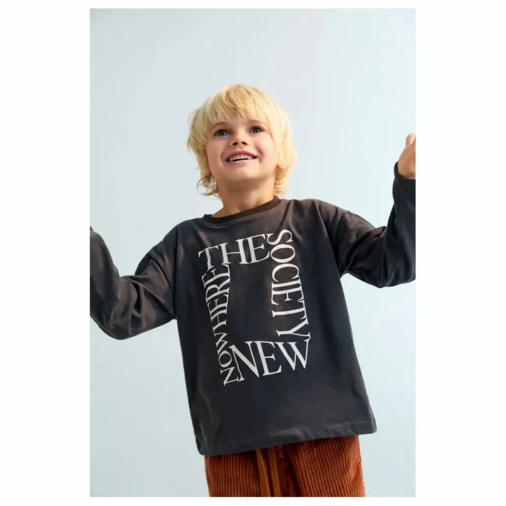 - T-shirt à manches longues avec imprimé contrasté sur le devant et brossé à l’intérieur et à l’extérieur.