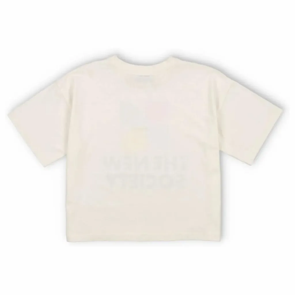 - T-shirt à manches courtes et épaules tombantes avec logo coloré sur le devant.
