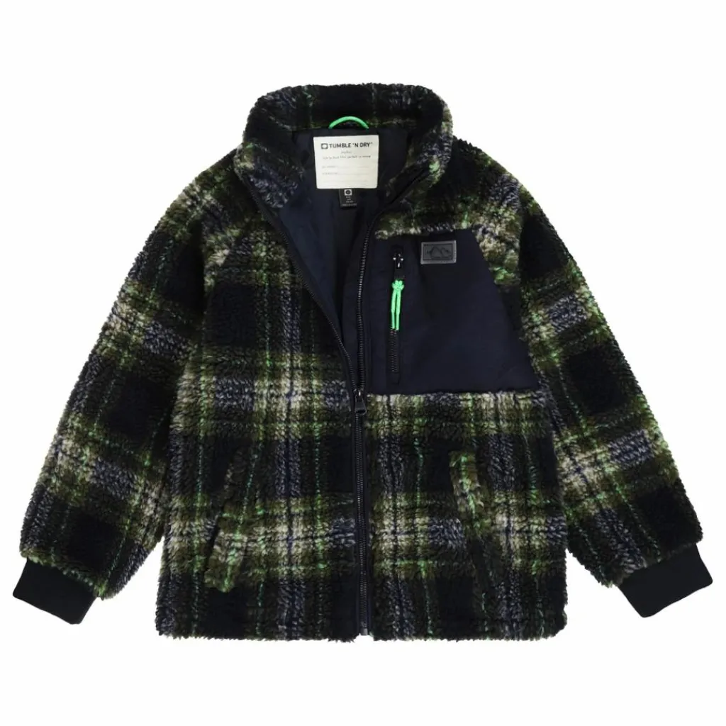 - Veste en tissu Teddy avec impression à carreaux, doublée, poignets côtelés élastiques, fermeture à glissière, poche poitrine avec fermeture à glissière, 2 poches latérales avec doublure en polaire, en polyester recyclé
