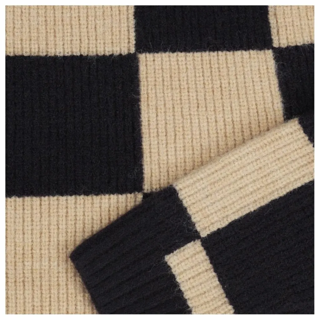 - Ce pull doux et tricoté est doté de poignets côtelés robustes et d’un motif de blocs tricotés.