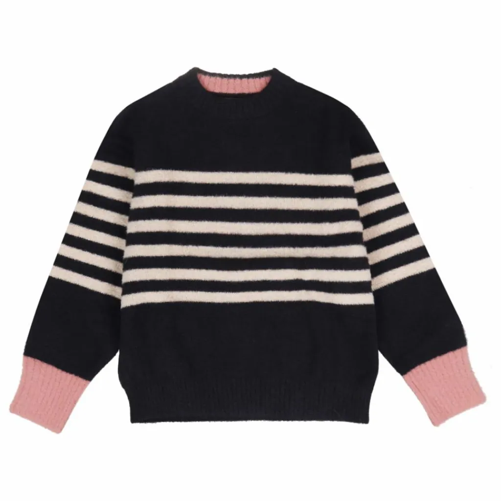 - Pull en maille douce avec bordures côtelées, rayures en maille avec lurex