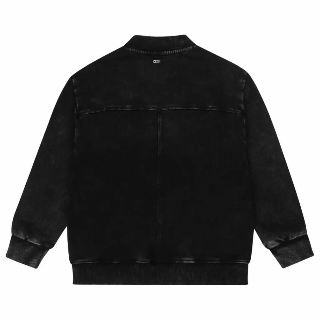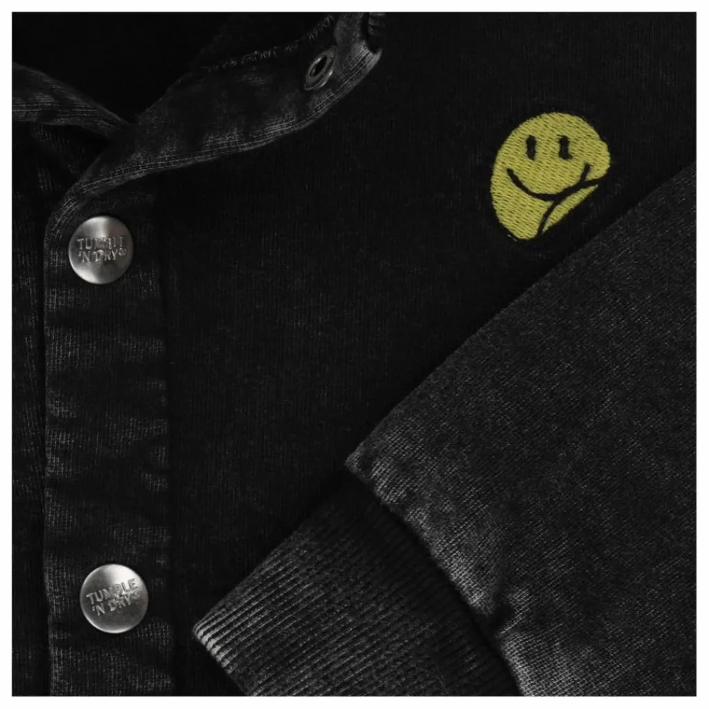 - Ce gilet de survêtement en modèle bomber a une couleur noire délavée et une broderie smiley sur la poitrine. Le cardigan est doté d’une fermeture à bouton-pression pratique, de poignets côtelés robustes et est fabriqué en coton biologique. ATTENTION ! En raison du lavage spécial, chaque pièce est unique et la couleur peut s’estomper après un lavage et/ou un port fréquent.