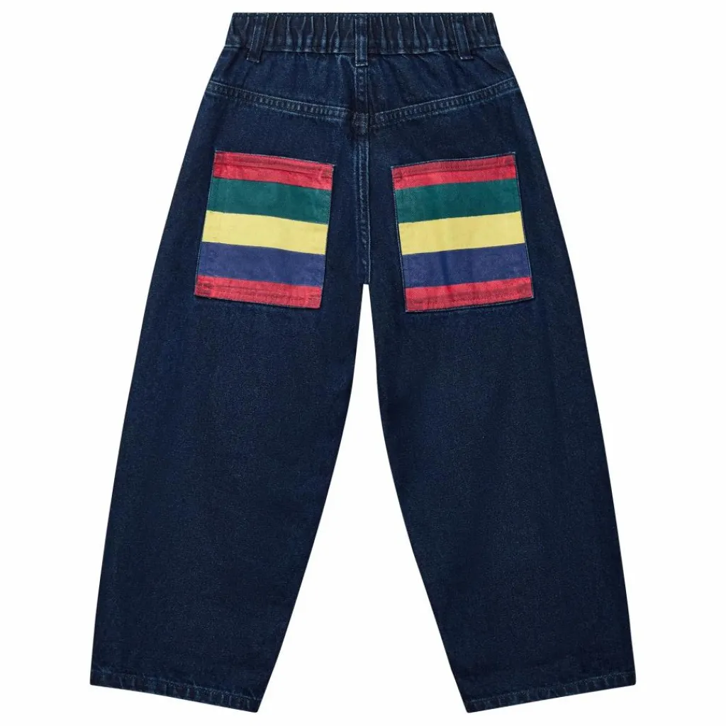 - Ce jean foncé, doux, à la coupe décontractée et fuselée est fait pour bouger ! Conçu pour le confort, il est fait pour suivre la croissance des enfants grâce à sa ceinture ajustable cachée. Il est doté de profondes poches plaquées à rayures à l’arrière, parfaites pour ranger les petits trésors !