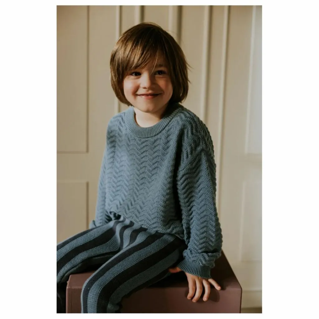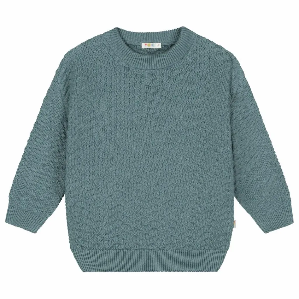 - This unisex knitted sweater is made with 100% organic cotton and yarns that are Gots and Oekotex® certified. It has a regular fit and the textured chevron pattern gives it a beautiful ‘wavy’ look. Perfect for playing hide and seek. Yuki offers a minimalistic high-quality collection for those who believe in slow fashion. Fairly made in Portugal.