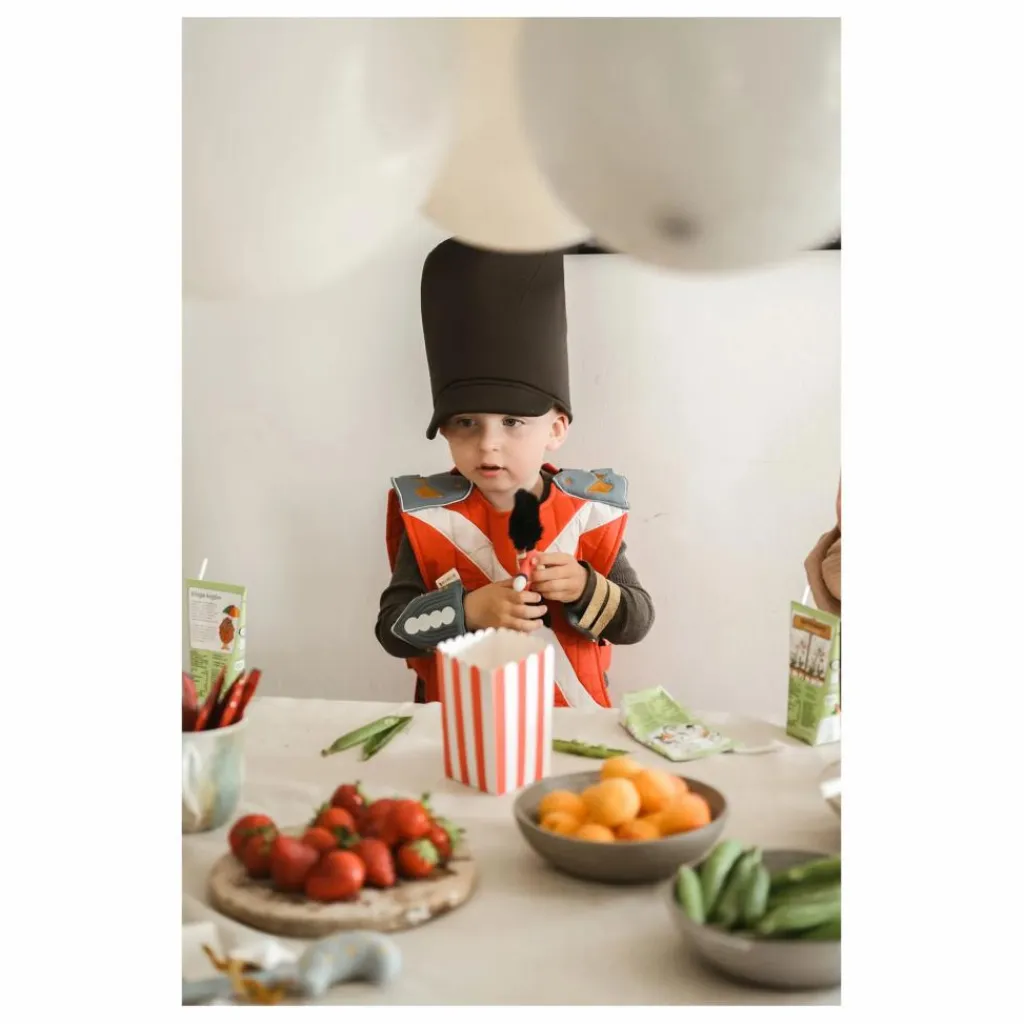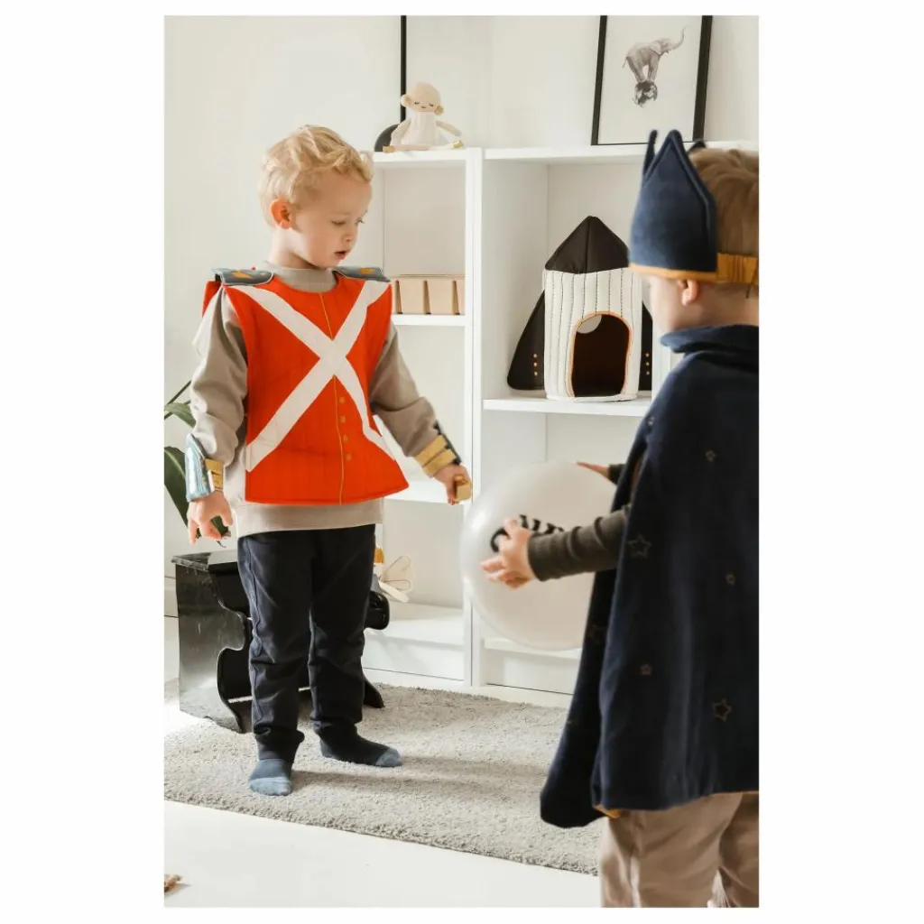 - Prêt à monter la garde comme une véritable garde royale danoise ! Avec la veste rouge emblématique et le grand chapeau noir, les petits peuvent se transformer en membres de la garde royale. L’ensemble de déguisement est conçu dans des matériaux doux et confortables, permettant des heures de jeu imaginatif. Parfait pour les jeux de rôle, les défilés dans le salon et les grandes aventures royales ! Recommandation d’âge 3-6 ans Norme européenne de sécurité des jouets – CE
