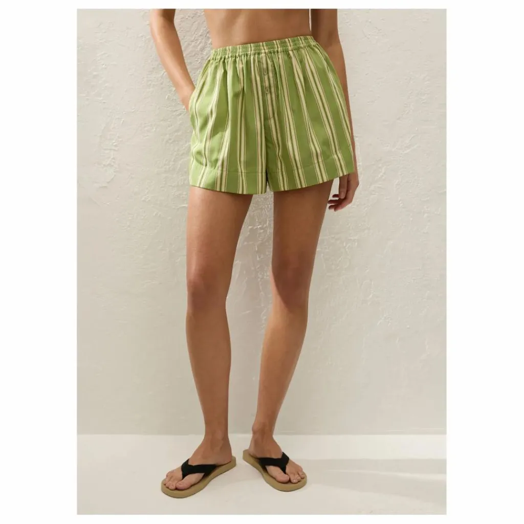 - – tissu coton yarn dye – short – fausse braguette avec boutons – taille haute – taille élastiquée – non doublé