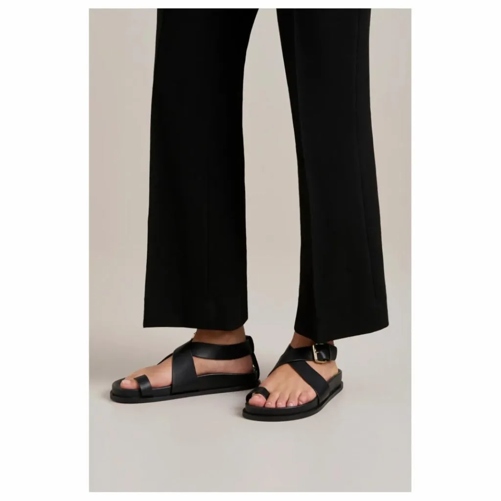 La sandale Dula repose sur une semelle intérieure moulée, avec un maintien pour l’orteil et deux brides croisées qui enveloppent le pied avant de s’enrouler autour de la cheville, se terminant par une boucle dorée douce. Ce modèle est confectionné en cuir pleine fleur, avec une tige en cuir, une semelle intérieure en cuir et une semelle extérieure en caoutchouc. Ces sandales entièrement en cuir sont d’une qualité supérieure et se patinent naturellement avec le temps.