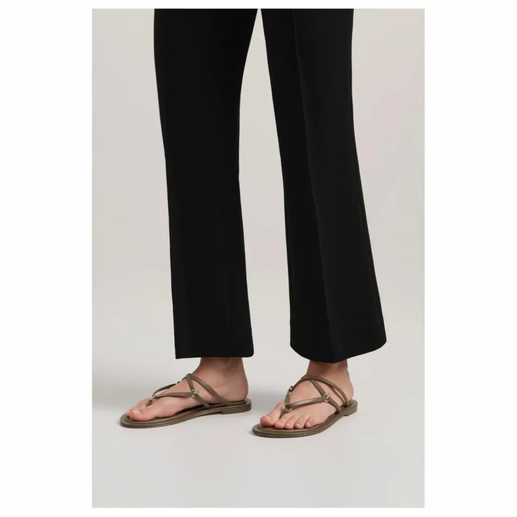 - Posée sur une généreuse assise plantaire en cuir doublement soudée, la sandale Nanaka est dotée de fines lanières qui s’entrelacent dans des anneaux circulaires en métal, fixant le dessus du pied dans un mouvement croisé.