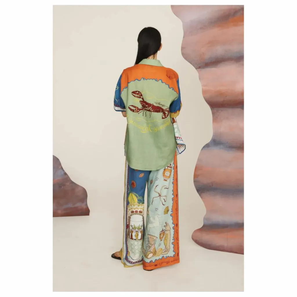 - Travail artistique en collaboration avec Sam Pauletto Silhouette de chemise décontractée Col pointu avec support Patte de boutonnage dissimulée avec boutons auto-couverts Manches retroussées avec bouton et patte de boutonnage