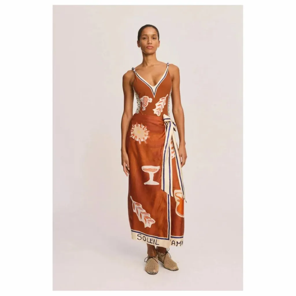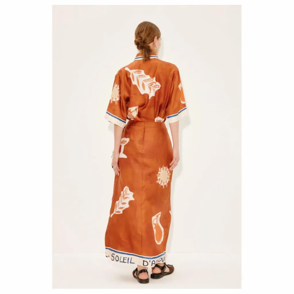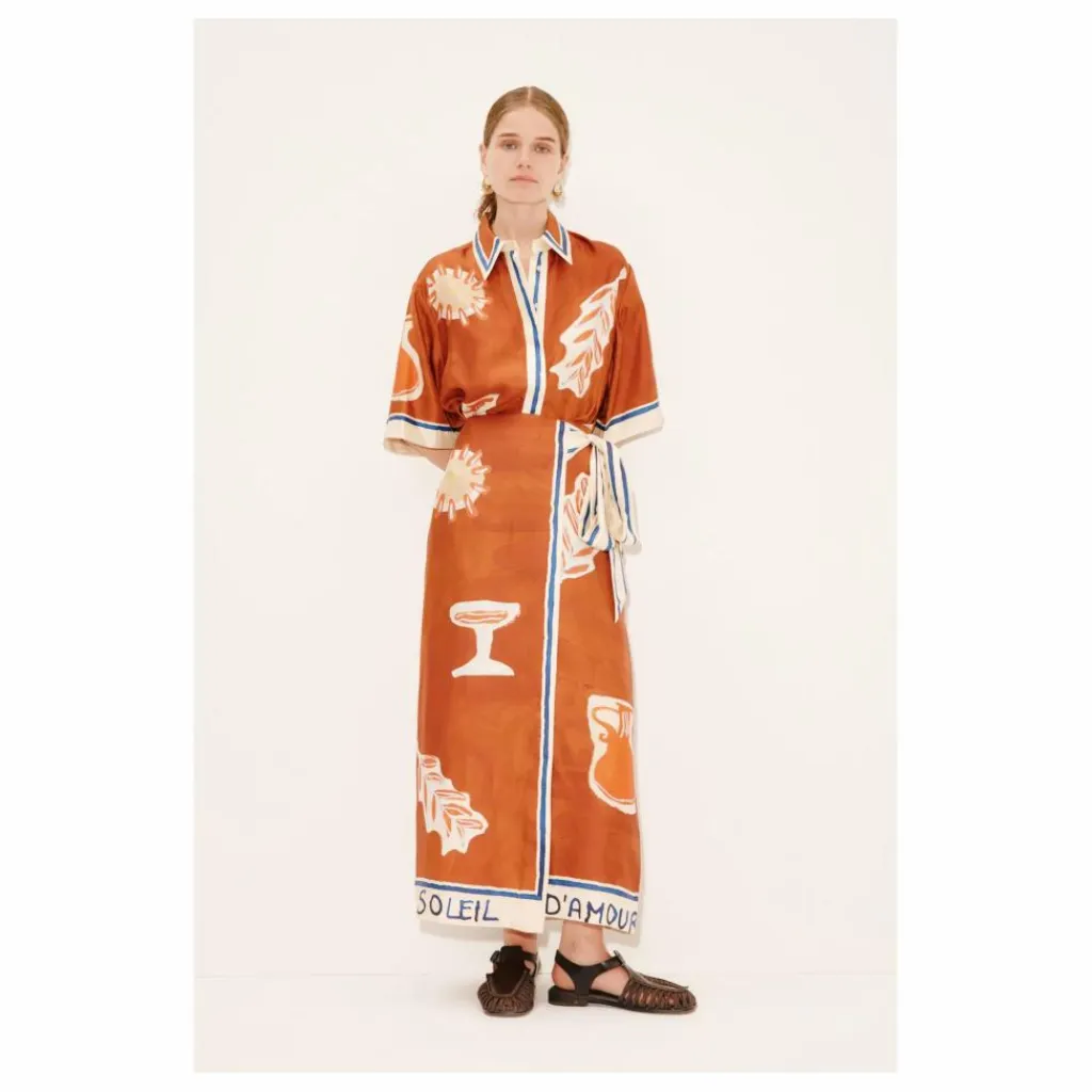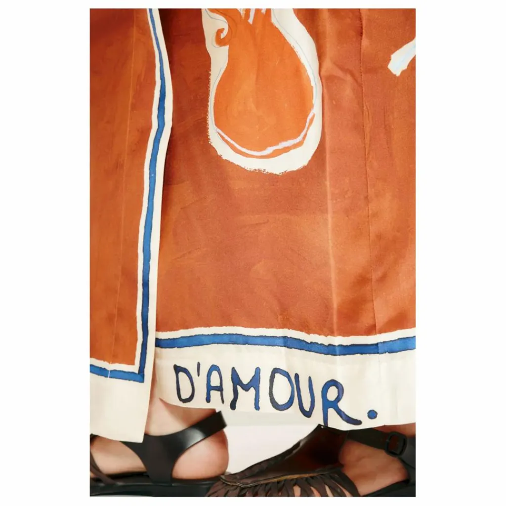 - – Œuvre d’art en collaboration avec Laurence Leenaert – Silhouette de jupe portefeuille décontractée – Détail de l’auto-cravate – Se référer aux photos du produit à plat pour une représentation fidèle des couleurs du produit