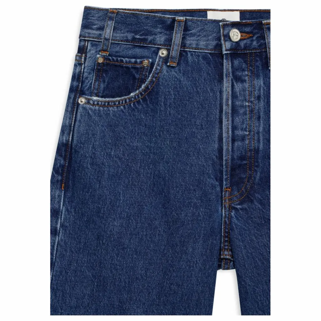 - Le Roy Jean, décontracté et sans effort, est fabriqué en 100% coton régénératif de poids moyen, sans élasticité, dans un délavage bleu propre.