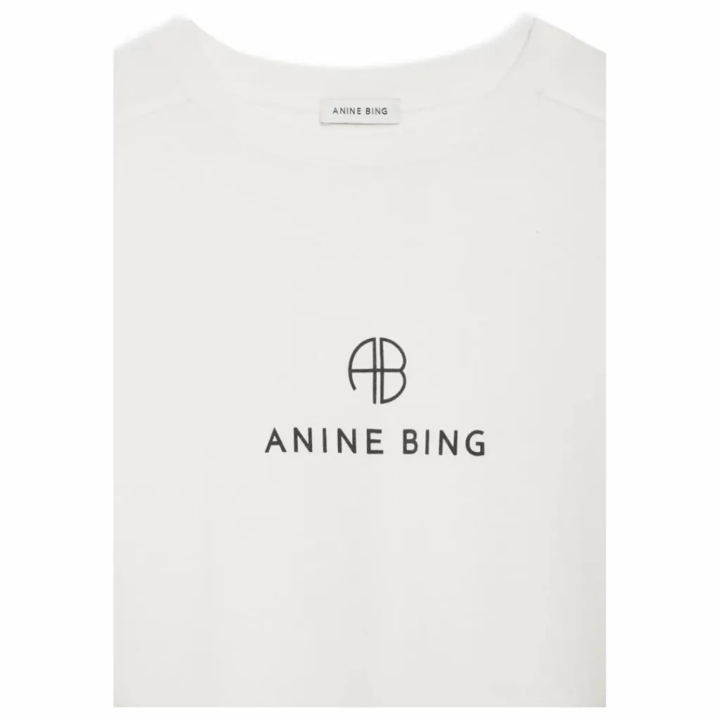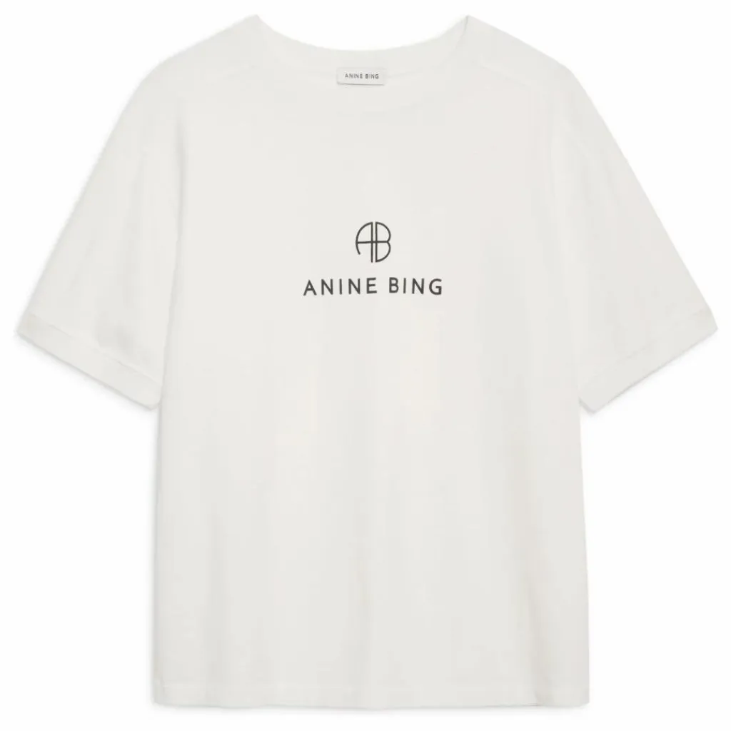 - Le tee-shirt Jaylin Monogram est un essentiel de la marque, fabriqué en jersey de coton épais ivoire. Sa silhouette d’inspiration rétro présente des manches raglan à coutures plates et des poignets côtelés. Il est orné d’un logo ANINE BING sérigraphié en noir contrasté sur le devant.