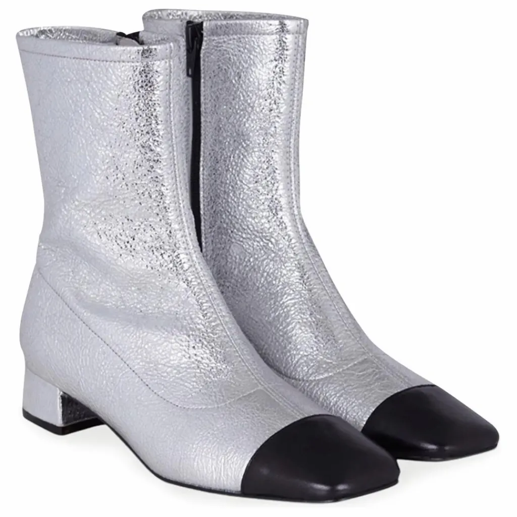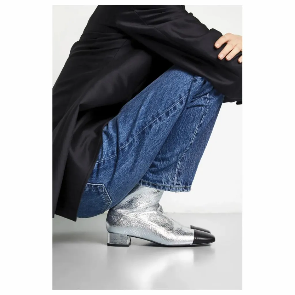 Fabriquées en cuir souple argenté avec un bout contrasté.