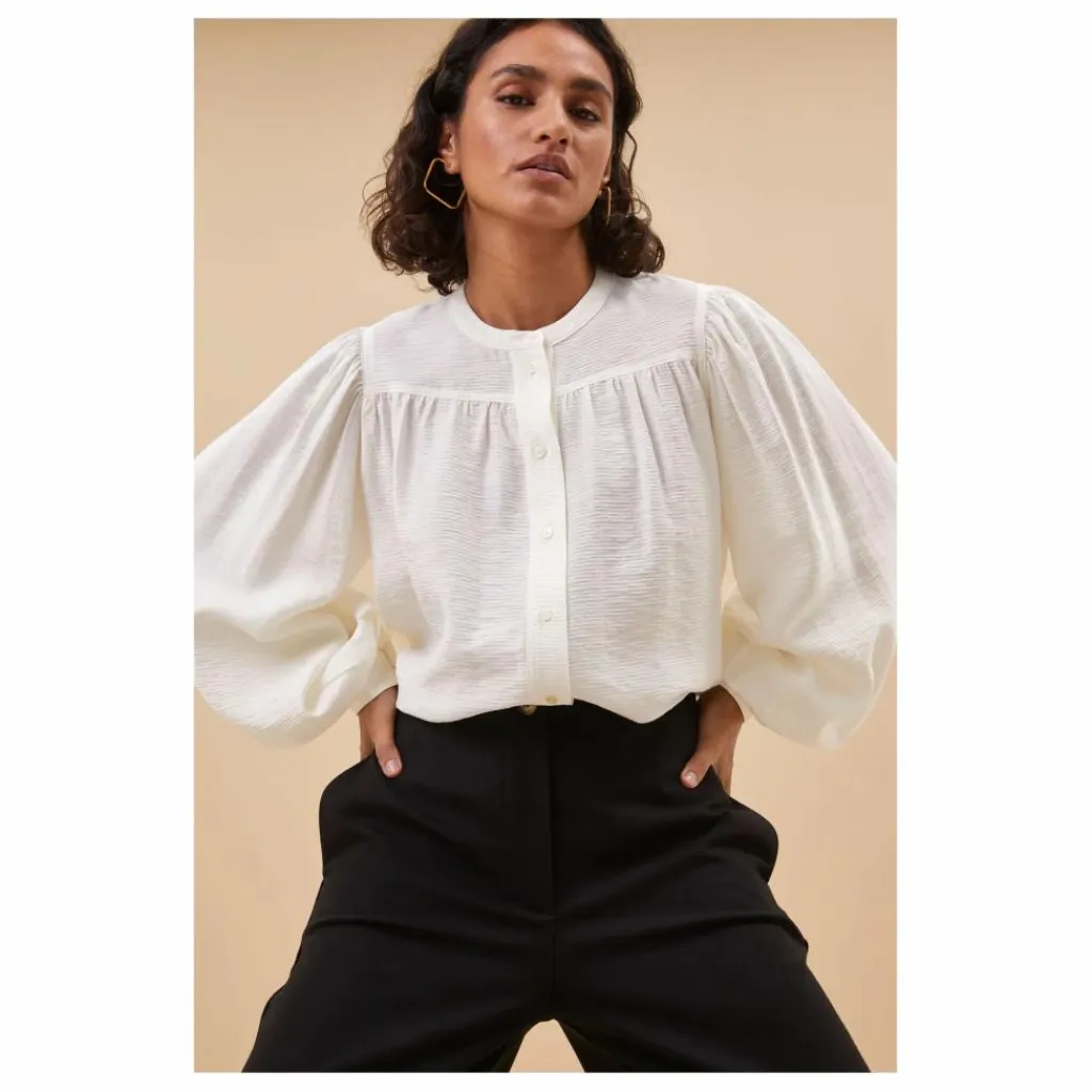 - Un vrai classique ! La blouse Olan est non seulement élégante mais aussi confortable. Elle présente une encolure ronde, une fermeture boutonnée et une coupe régulière. Les larges manches bouffantes donnent à la blouse un aspect chic et décontracté qui ne peut manquer dans votre garde-robe. Associez-la au pantalon Odin Classy pour un look sophistiqué.