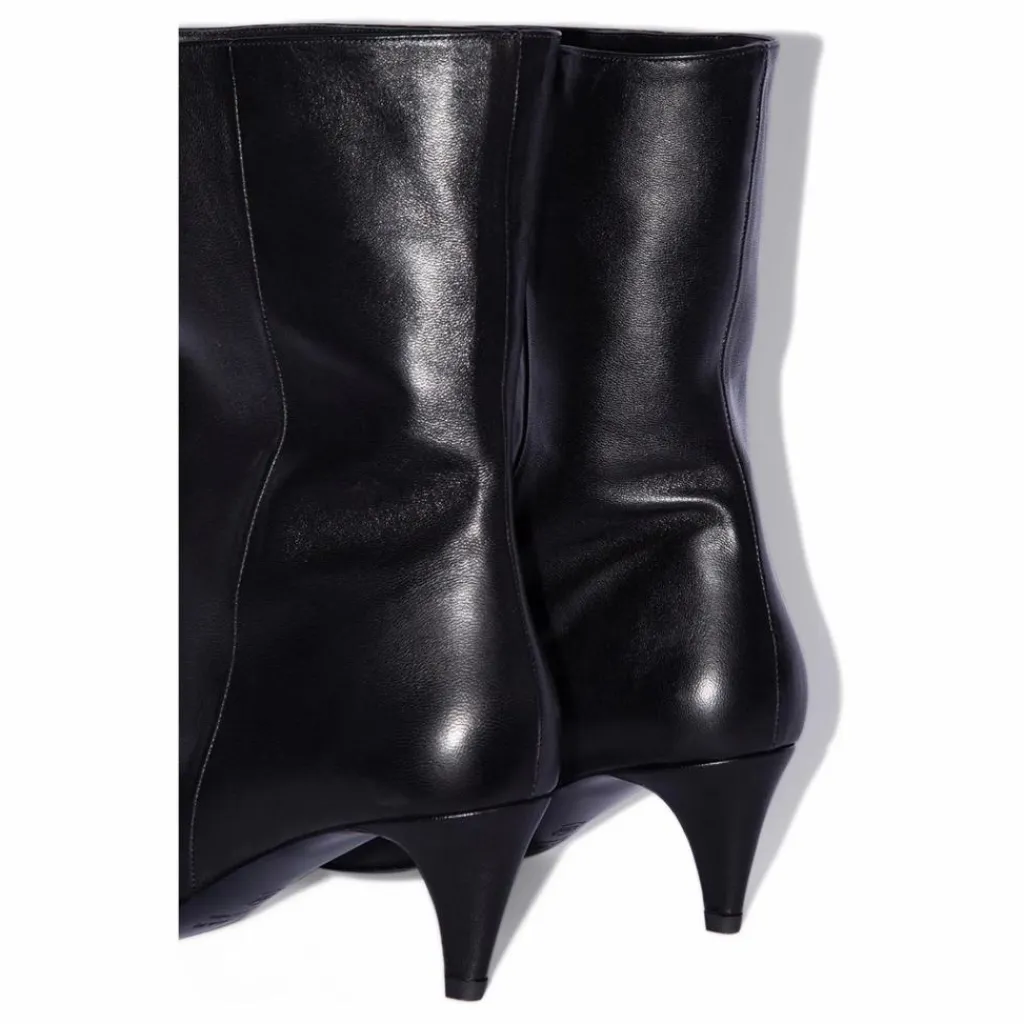 - – Botte en cuir souple – Confectionnée en agneau italien doux – Talon conique recouvert de cuir – Hauteur du talon : 6 cm – Tige mi-mollet à enfiler – Bout pointu