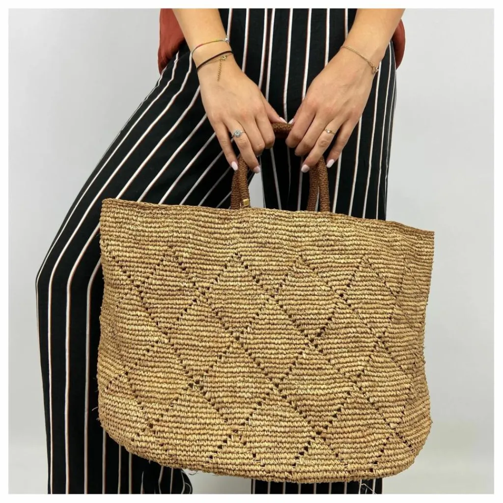 - Une belle harmonie de forme et de texture pour ce sac au tressage losangé. Un modèle raffiné et tout terrain.